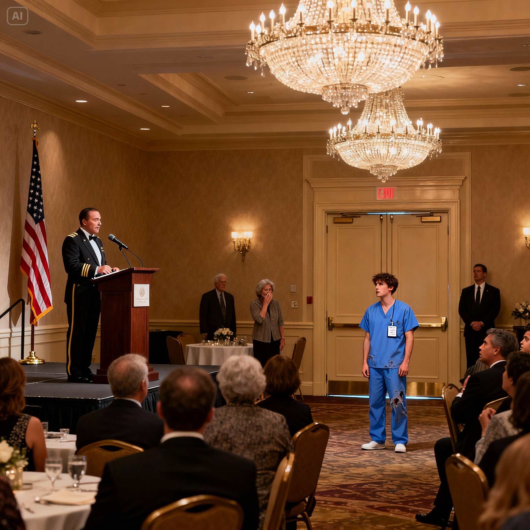 A profound, echoing silence fell over the ballroom. It was a silence so deep you could hear the hum of the air conditioning. Every head turned, searching for the face that matched the name. They were looking for a man in a suit, a distinguished guest.