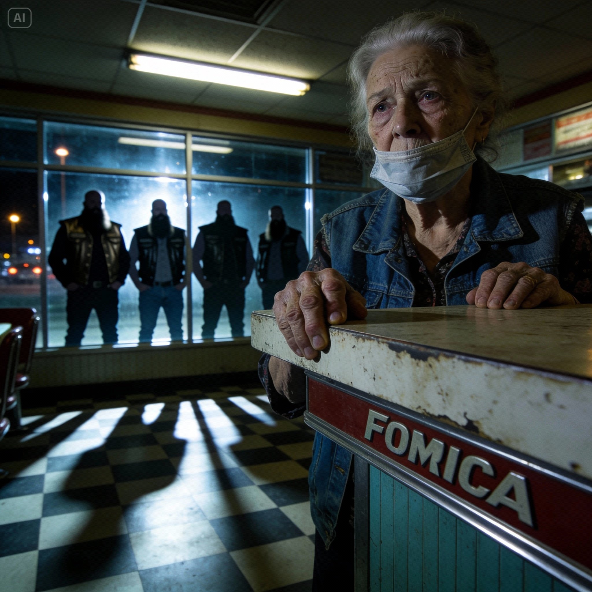 Fifteen of them. My mind had the number counted before I even started to register the details. Fifteen men filling the entrance, a wall of denim and leather that blocked the view of the streetlights blinking out in the parking lot. In an instant, my sixty-seat diner, my whole world, felt like a shoebox. It was nine o’clock. The dinner rush was a distant memory, the air thick with the comfortable ghosts of diner coffee and fried onions. All that was left was the quiet, electric hum of the pie case and the low murmur from the few folks still lingering over their plates.
