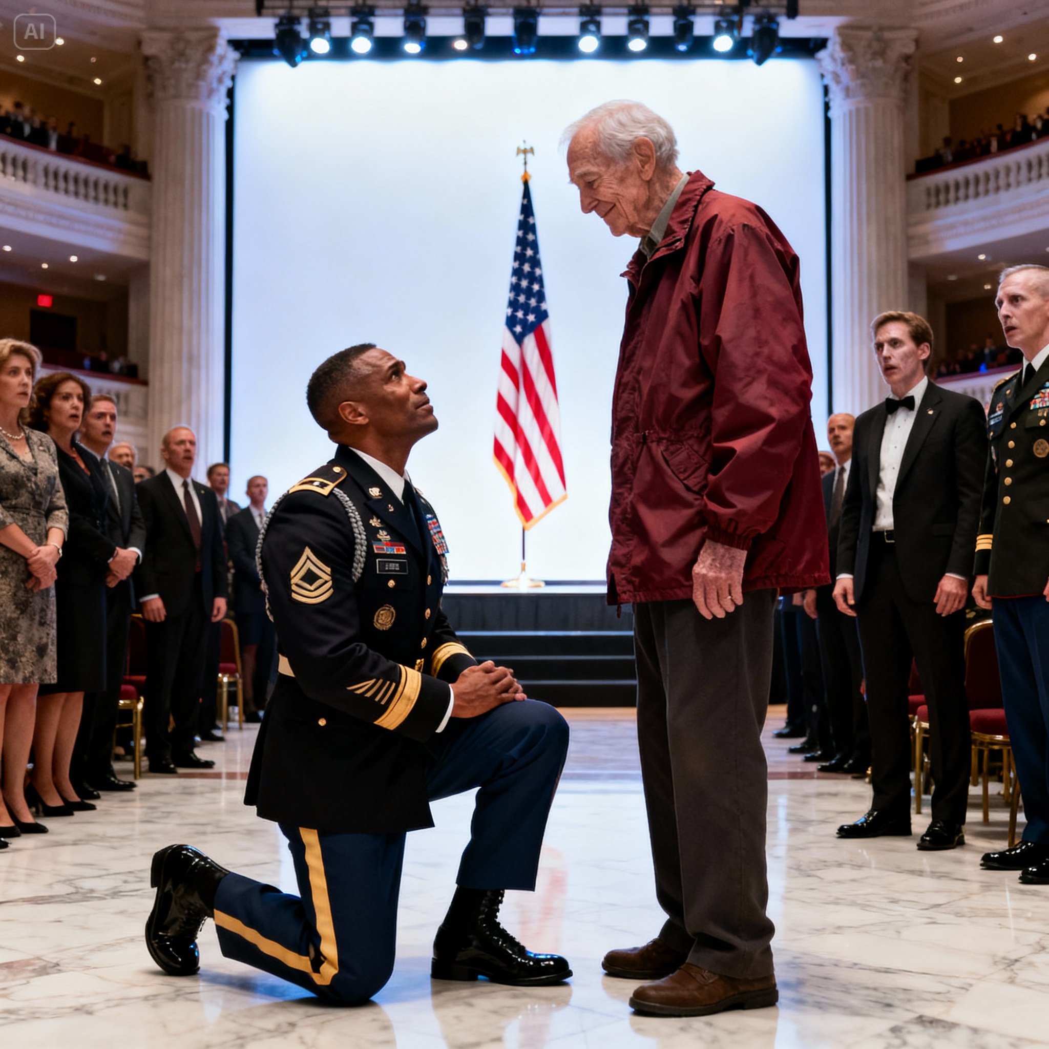 The ceremony began. Speeches were made. Awards were presented to a new generation of heroes. But no one, not really, was looking at the stage. All eyes kept drifting back to the front row, where a legendary general sat leaning in, listening intently as an old man whispered stories only he could hear. The worn, crimson nylon of the jacket stood out like a beacon of authentic glory in a sea of superficial black and white.