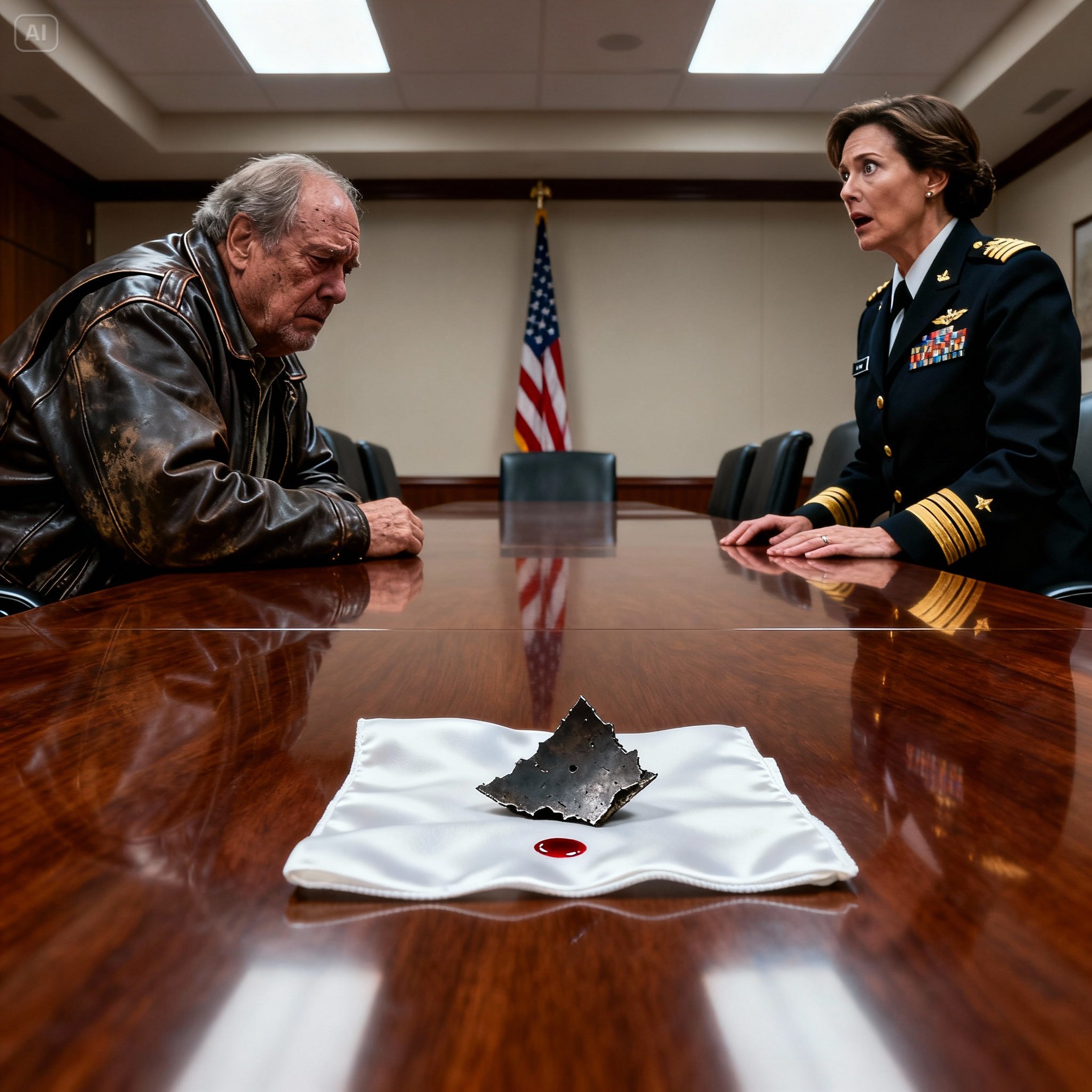 Caleb didn’t move. He didn’t plead or protest. He just looked down at the ugly truth lying on the table. With a deep, weary sigh, he slowly, carefully folded the white silk handkerchief back over the shrapnel, hiding it away again from their clean, modern world. He slipped the small, heavy bundle back into his pocket.