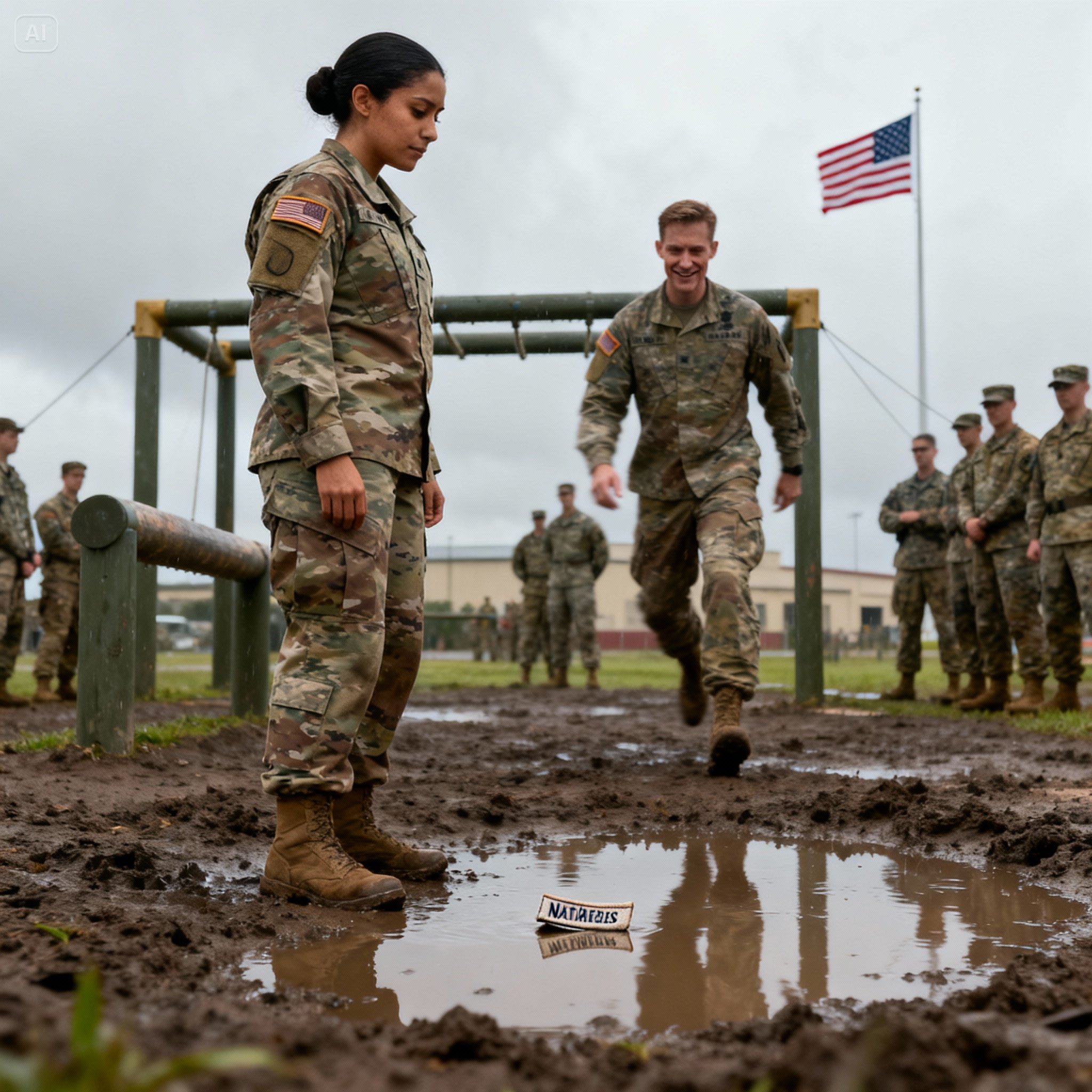 Corporal Nadia Reyes didn’t so much as blink. Her gaze remained fixed on the hazy middle distance, a point somewhere between the swaying cargo net and the treeline. She watched as a small, olive-drab rectangle of fabric—her name tape, stitched with the block letters of her identity—arced through the air. It seemed to hang there for a moment, a slow-motion study in humiliation, before it landed face-down in a murky puddle. REYES. Now just a smudge of thread in brown water.