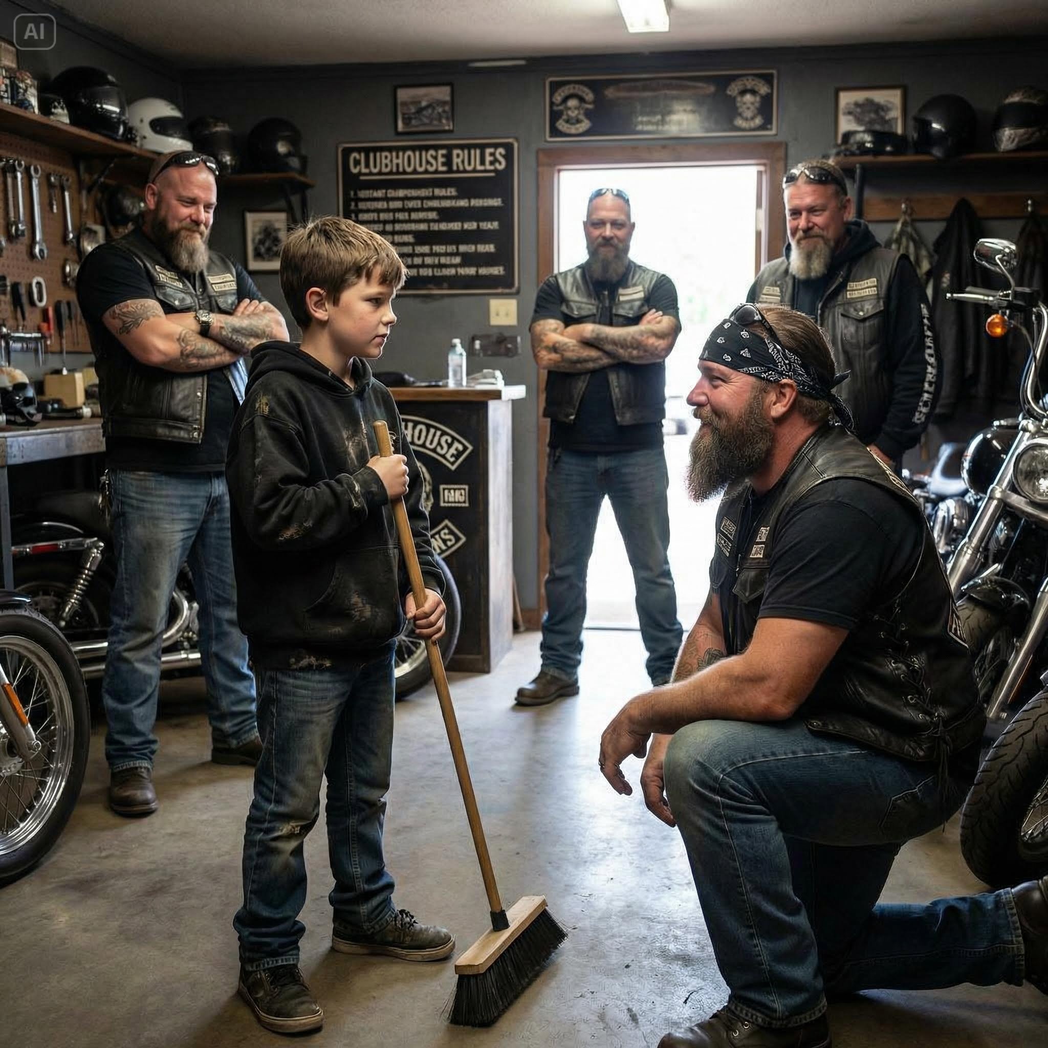 The silence that followed was absolute. The clinking of wrenches stopped. The music seemed to fade into the background. Every man in that room—men who had been shot, stabbed, and hardened by the road—understood exactly what a twelve-year-old boy meant when he said he needed a lock for his bedroom door.