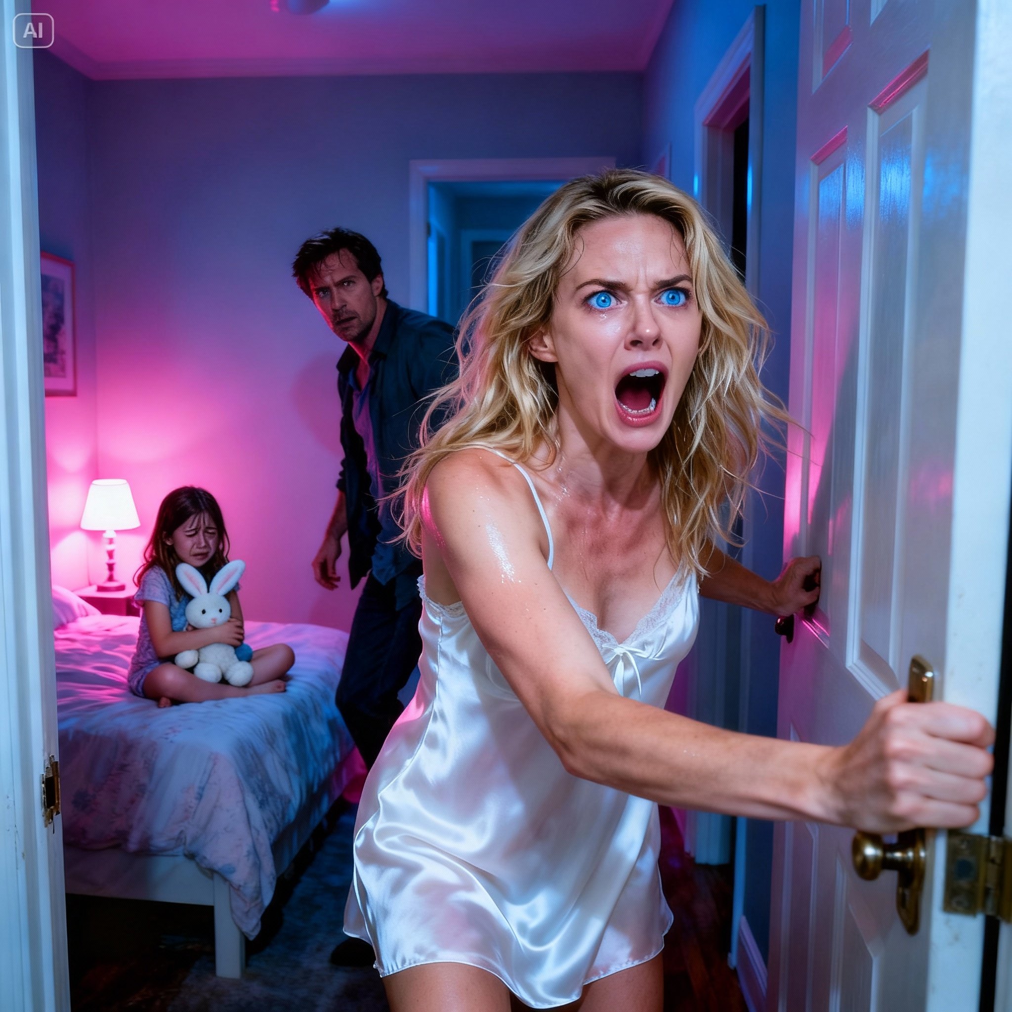 Emma’s heart hammered as she grabbed her phone and opened the hidden-camera app. The feed flickered to life. Through the dim glow of Lily’s night-light, she saw Mark step into the room, closing the door behind him with deliberate slowness. Lily, half-sitting in her bed, froze when she saw him. Even in the grainy video, Emma could see her daughter’s hands tremble.