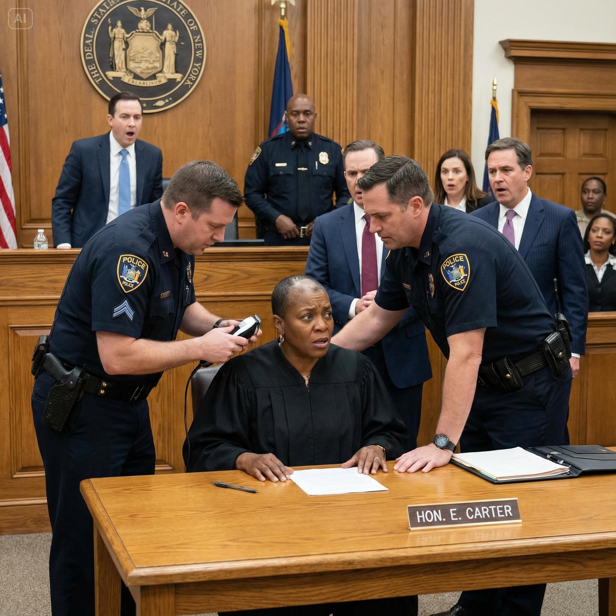 At the defense table, Officers Evan Rourke and Tyler Kessler sat in crisp uniforms, their badges polished, their posture relaxed.