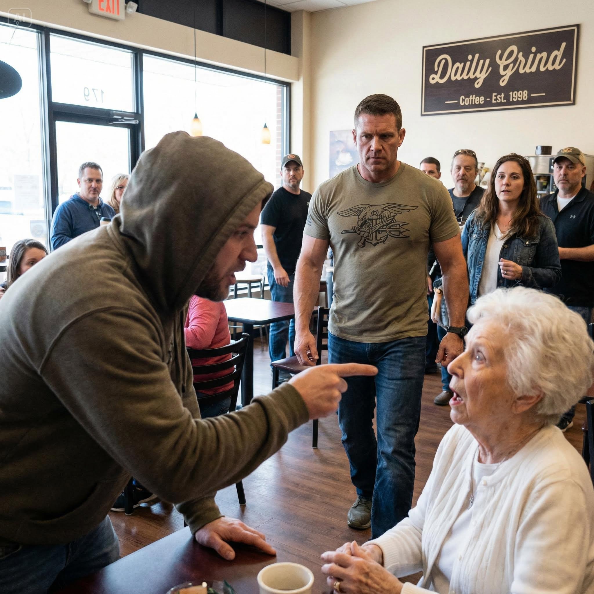 Word spread through town within hours: the “untouchable” Travis had been put on his knees in Marta’s Diner by her son — a Navy SEAL with a dog that looked like a living weapon.