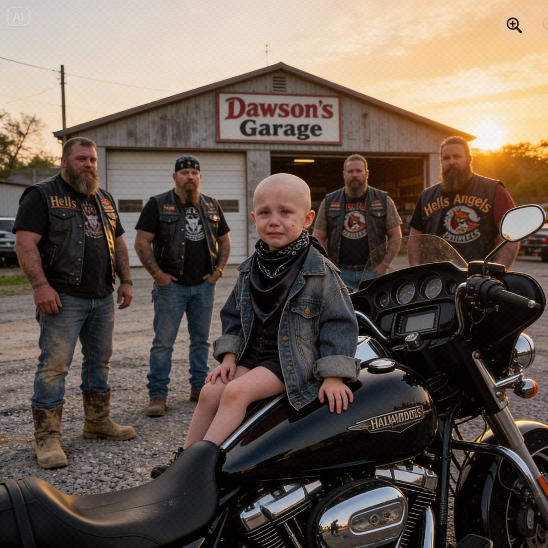 She saw the motorcycles first—twenty gleaming machines lined up like iron sentinels outside Dawson’s Garage. This wasn’t a place for “polite” society. This was the territory of men who lived by a different code. Most people in Milbrook crossed the street when they saw these men. They saw the leather vests, the heavy boots, and the patches that whispered of a world governed by blood and loyalty. But Ruby wasn’t looking for “respectable” people. She was looking for a ghost.