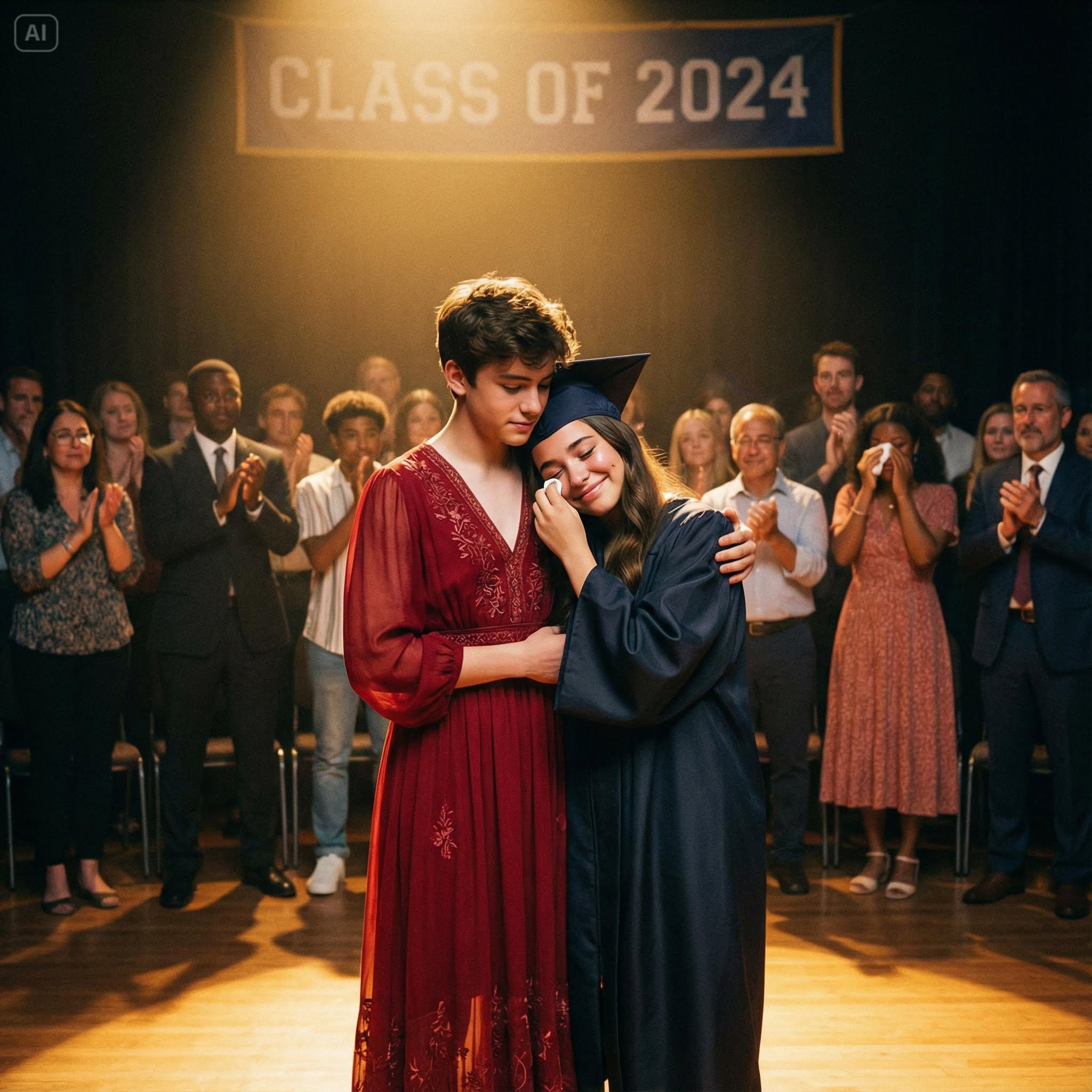 From the shadows of the stage wing, a girl stepped into view. It was Nora. She was wearing her graduation gown, but underneath, I could see she was trembling. Her face was streaked with tears.