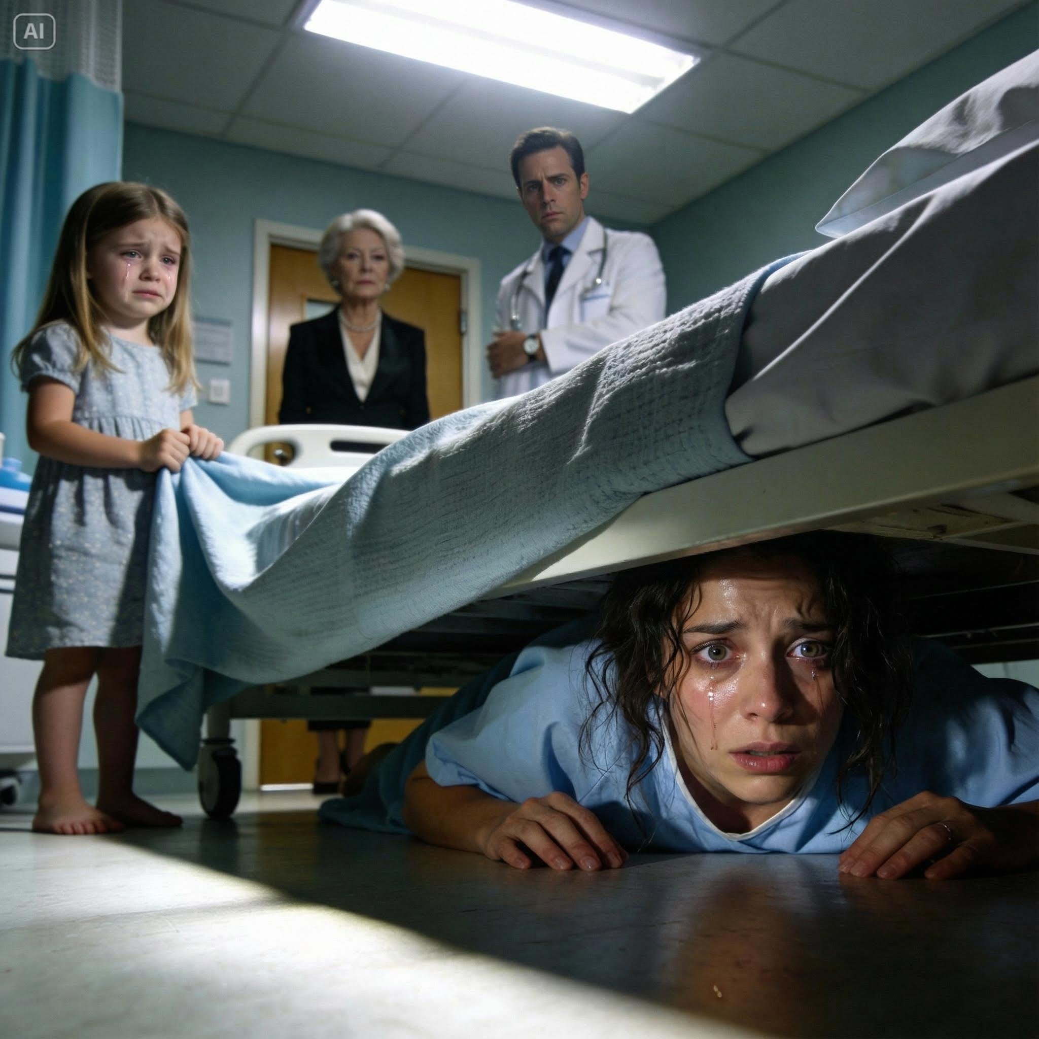 “Dad,” she said, her voice shaking violently but loud enough to break the escalating tension, “Mom is under here. She’s hiding because Grandma and the doctor are trying to hurt her. She signed papers, but she didn’t read them.”