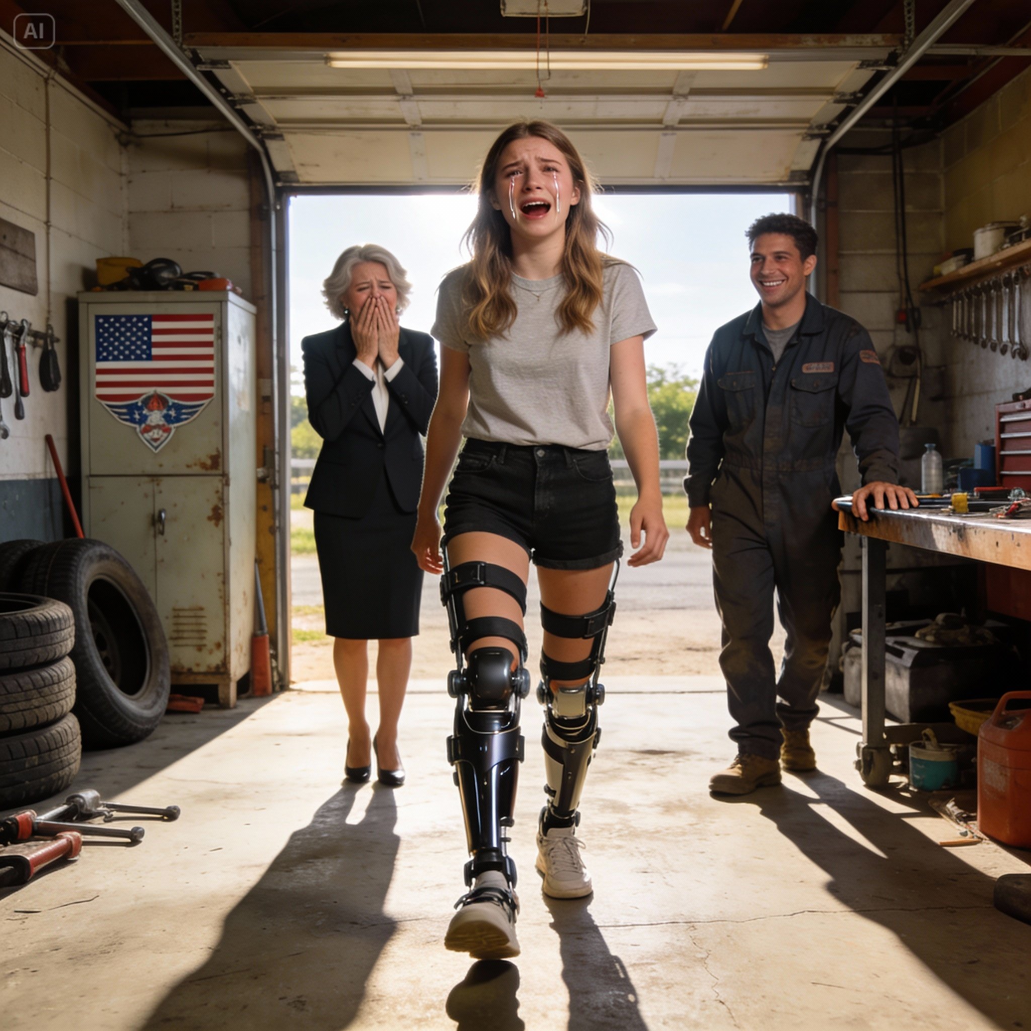 Amelia’s presence in the garage became a quiet, powerful motivation for Ethan. She watched him with admiration, noticing how carefully he worked, treating her braces not as equipment, but as something precious. She shared stories about her childhood accident, the endless hospital days, and the dreams she had lost. Ethan listened closely, feeling a deep respect for her unshakeable strength.