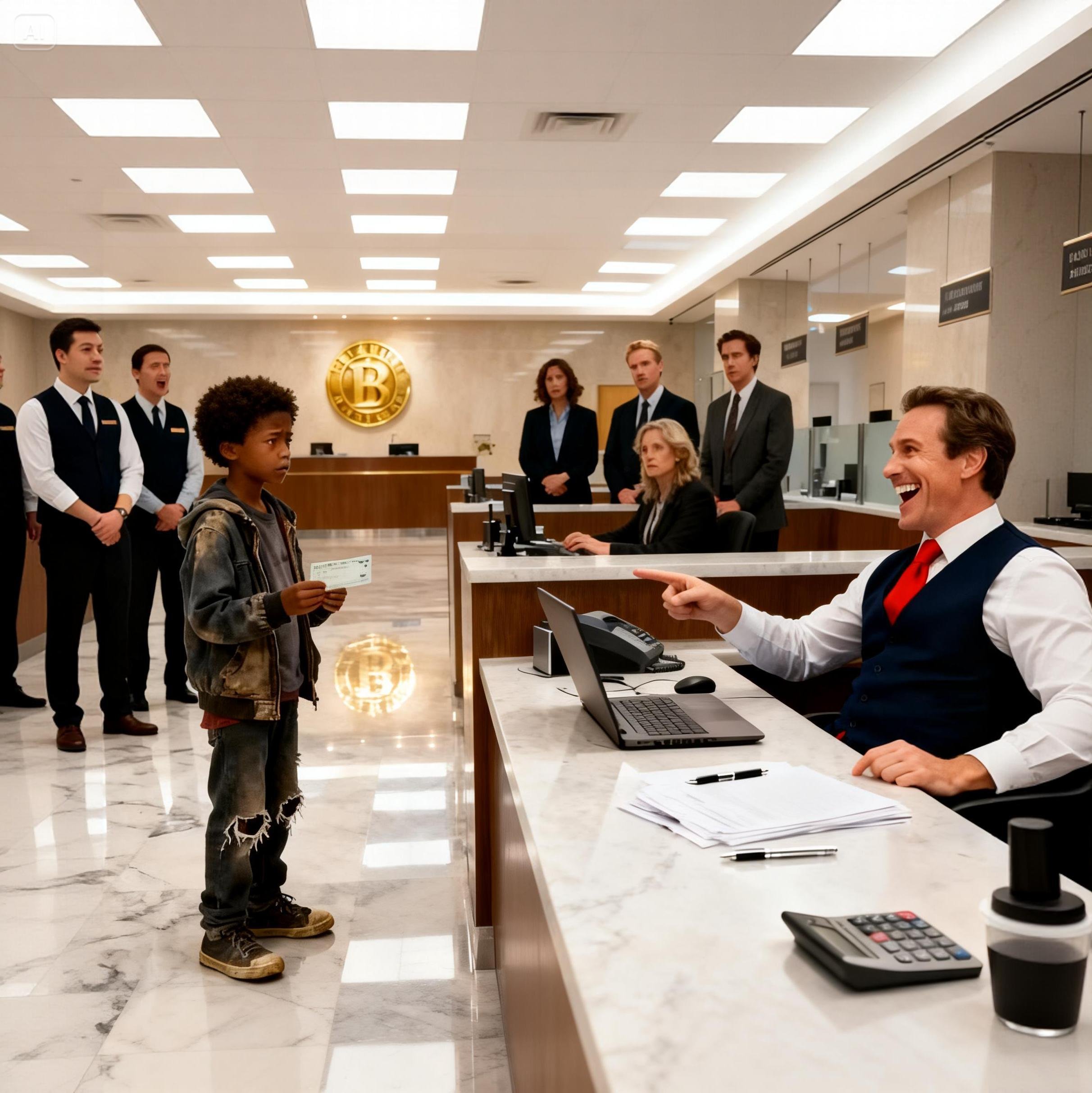 “Check your account?” His voice boomed, playing to the audience of wealthy patrons. “This is First National Heritage Bank, not a welfare office for street kids.”