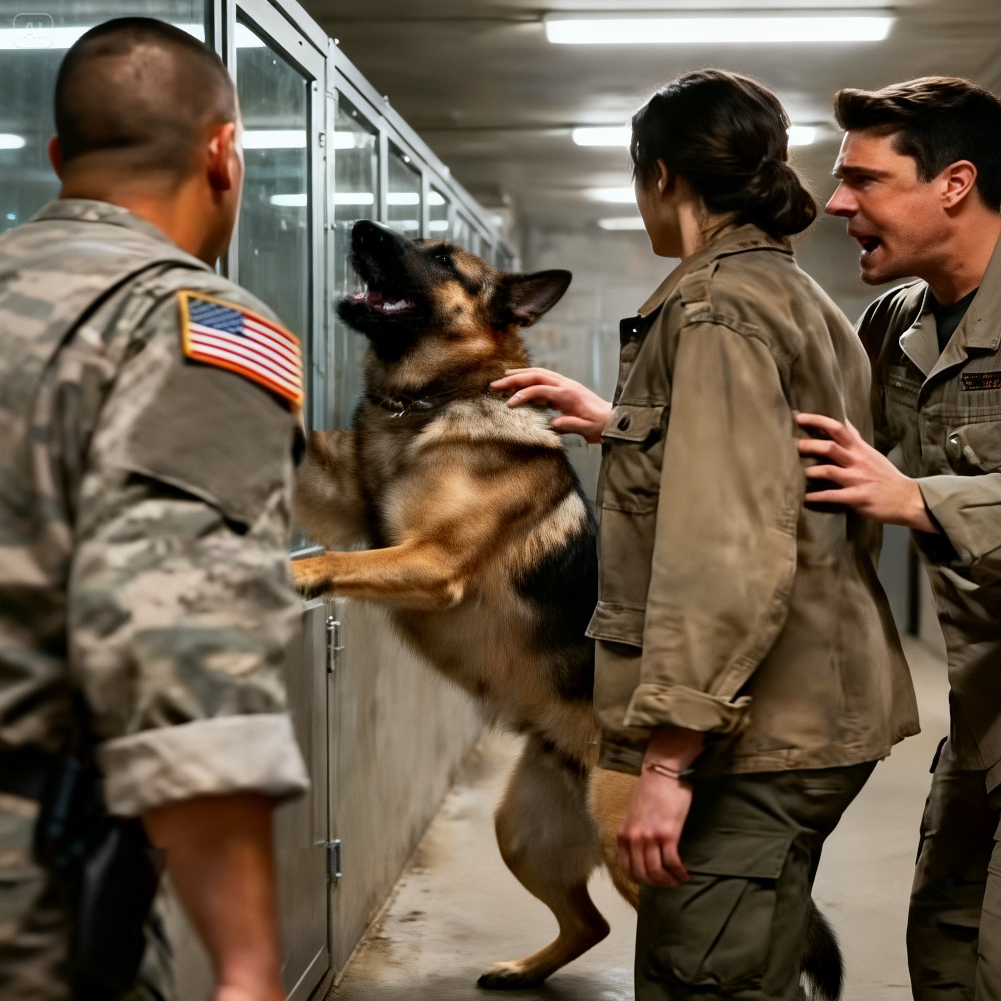 I found them outside Kennel 7. Major Haskins, the handlers, and a woman in a lab coat—Dr. Sutter, the behavioral specialist. They were arguing, their voices bouncing off the concrete walls.