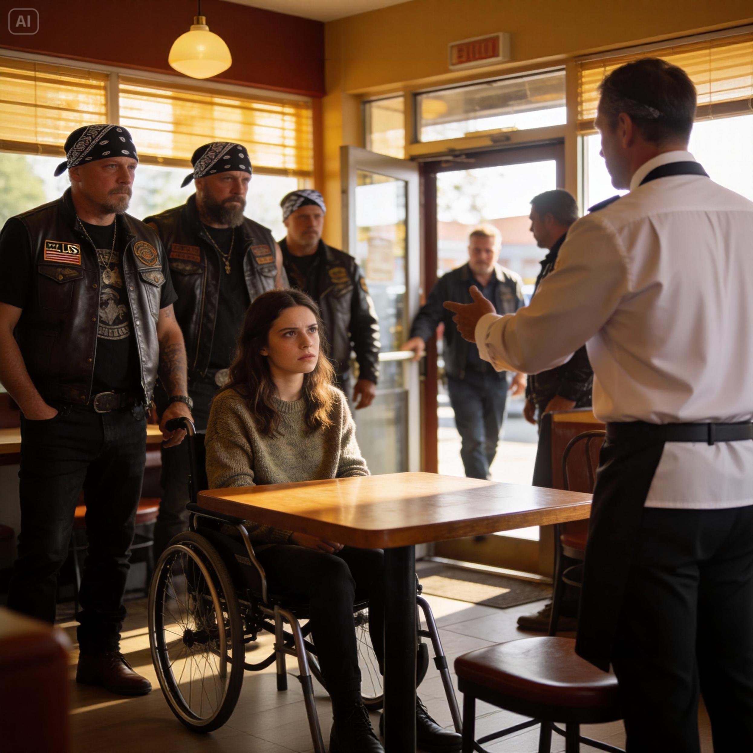 Emma Dawson’s hands were shaking before she even touched the door handle. She sat in her wheelchair outside Dusty Trails Diner, watching the morning crowd through the grease-smeared window. Families eating eggs, truckers hunched over coffee. Normal people living normal lives.
