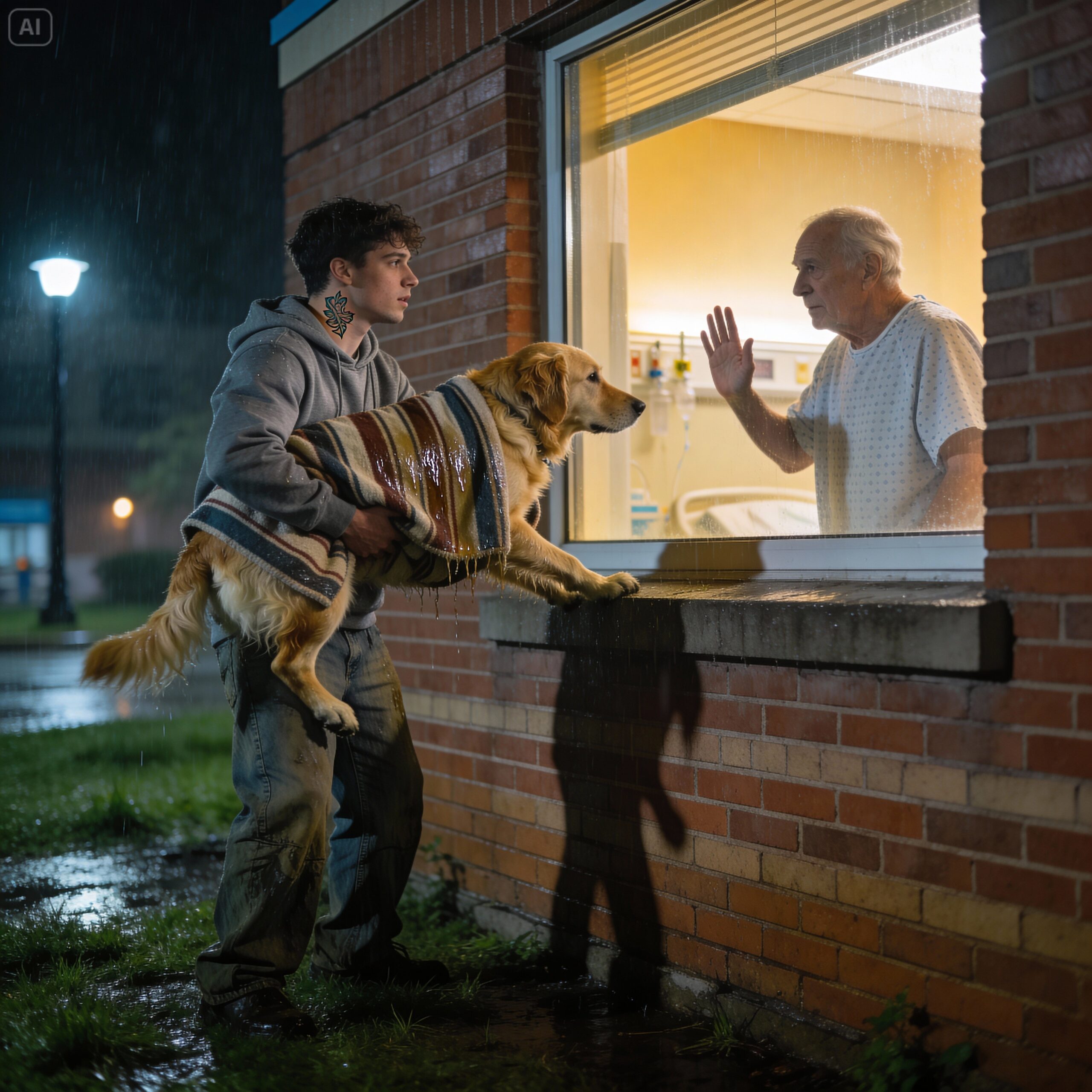 Then, on the third night, a massive storm rolled into the city. Thunder rattled the hospital windows. I was drifting in a morphine haze when I heard a faint tap-tap-tap on the glass of my first-floor room. I turned my head, expecting a branch, but what I saw standing in the pouring rain changed everything…