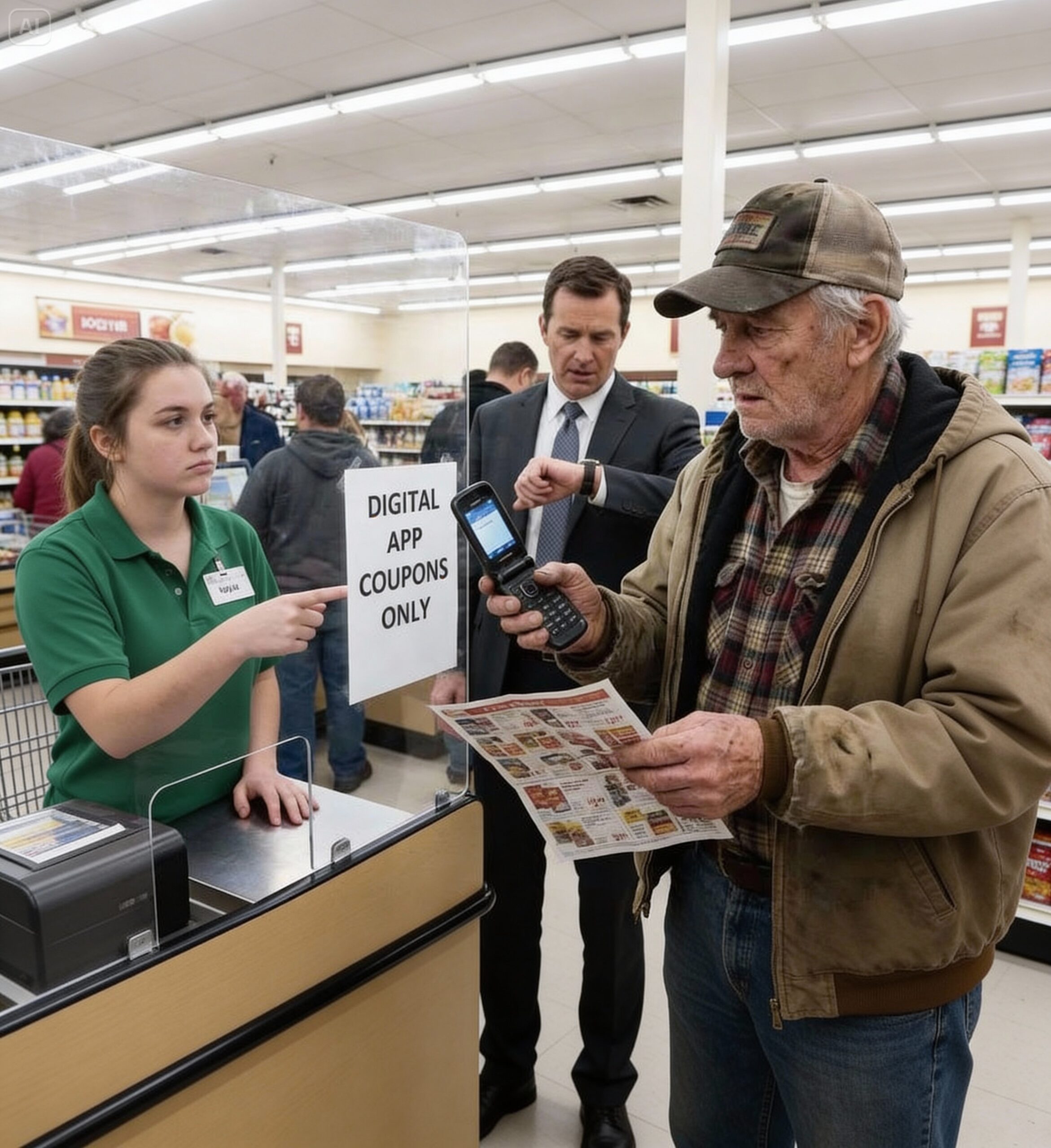 “No,” Frank boomed. He had that voice again—the foreman’s voice. “I’m talking. You want to help the community? Don’t give me an app. Give me a cashier who looks me in the eye. Give me a human being. Give Mrs. Gable a way to get her social security without buying a computer she can’t afford.”