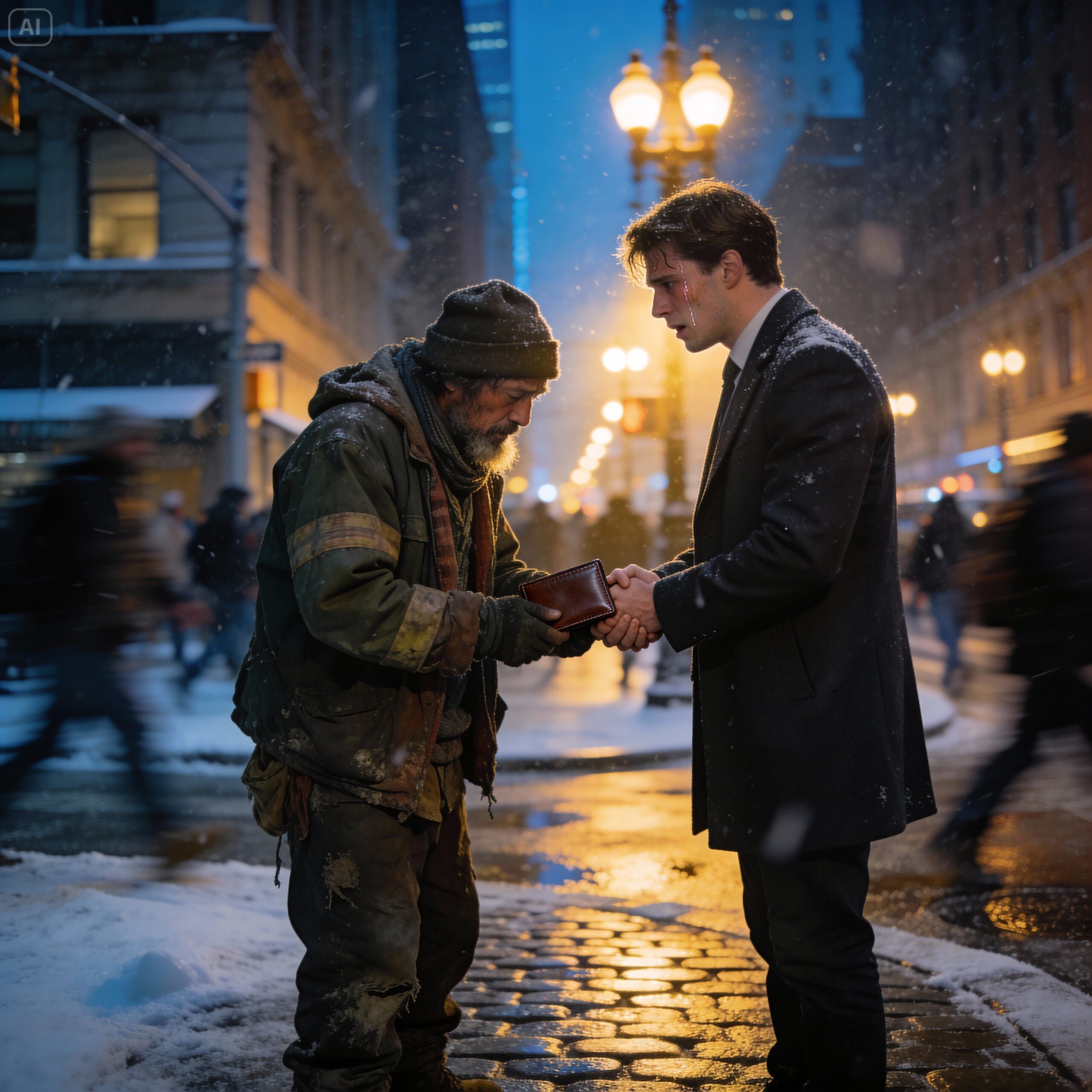 The wallet slipped, hit the hem of his coat, and fell silently into a pile of dirty slush near the curb. Liam kept running, disappearing into the crowd, oblivious that his entire future was lying in the snow.