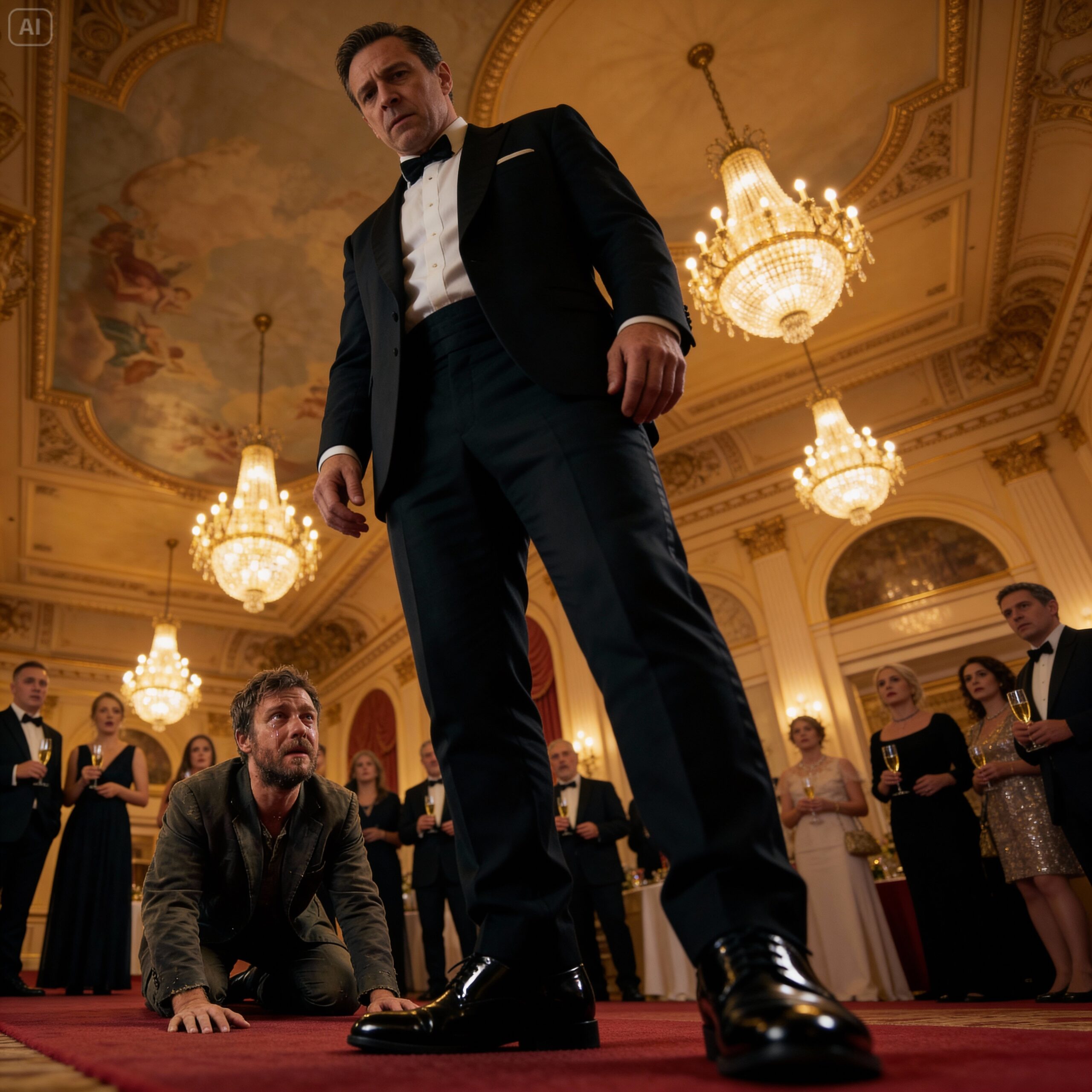 I was on my knees. The perspective of the room shifted. The chandeliers seemed miles away. The faces of the guests—wealthy investors, politicians, old money families—were now looming above me, distorted giants judging a bug on the rug.