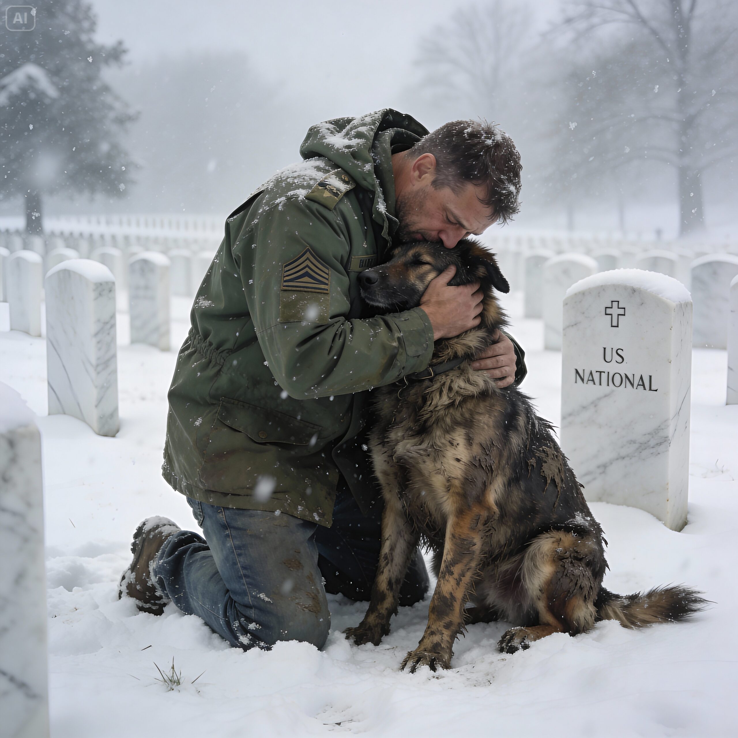 I looked up. It was him. The dog. He had pushed through the storm to find me. He didn’t ask for food. He pressed his heavy, wet head onto my shoulder, pinning me upright against the wind.