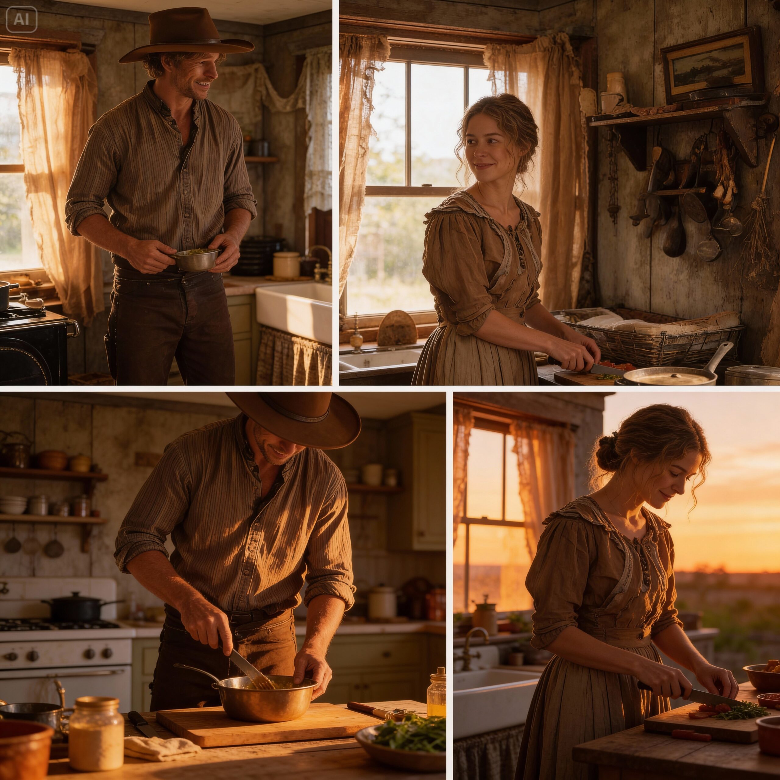 He stepped closer, invading my space. “This isn’t a school. It’s a ranch. I need a cook, not a charity case.” He pulled out a pocket watch. “Dinner is at six. If you can’t handle the stove by then, the wagon takes you back to town. Clock’s ticking.”