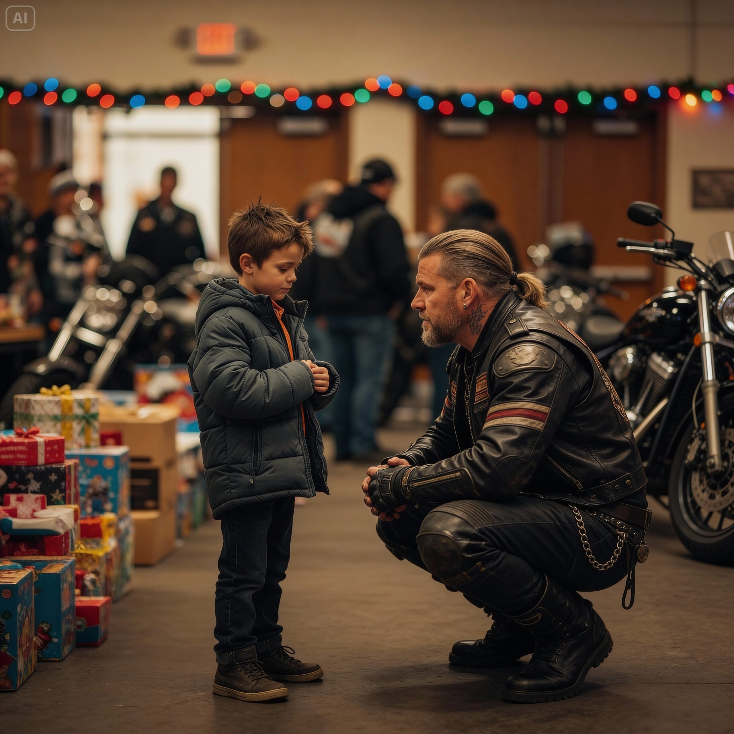 I’m Harlan, though everyone in Oakhaven, Tennessee, calls me “Tank.” I’ve spent the last decade organizing the Iron Road Brotherhood’s holiday toy drive at the old American Legion hall. It’s usually the loudest day of the year. The air smells like diesel, leather, and cheap pine air freshener. We had fifty bikes parked out front, chrome gleaming in the winter sun, and inside, it was chaos—kids screaming, paper tearing, and tough-looking guys melting like butter when a toddler high-fived them.