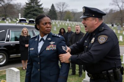 He slammed me against the hot metal of his cruiser. The world tilted. I could see my family’s faces, distorted by horror and disbelief. I could see the flag draped over my mother’s coffin. And then I heard it—the cold, metallic click of handcuffs closing around my wrists. It was a sound as final and shocking as a gunshot in the quiet chapel grounds.