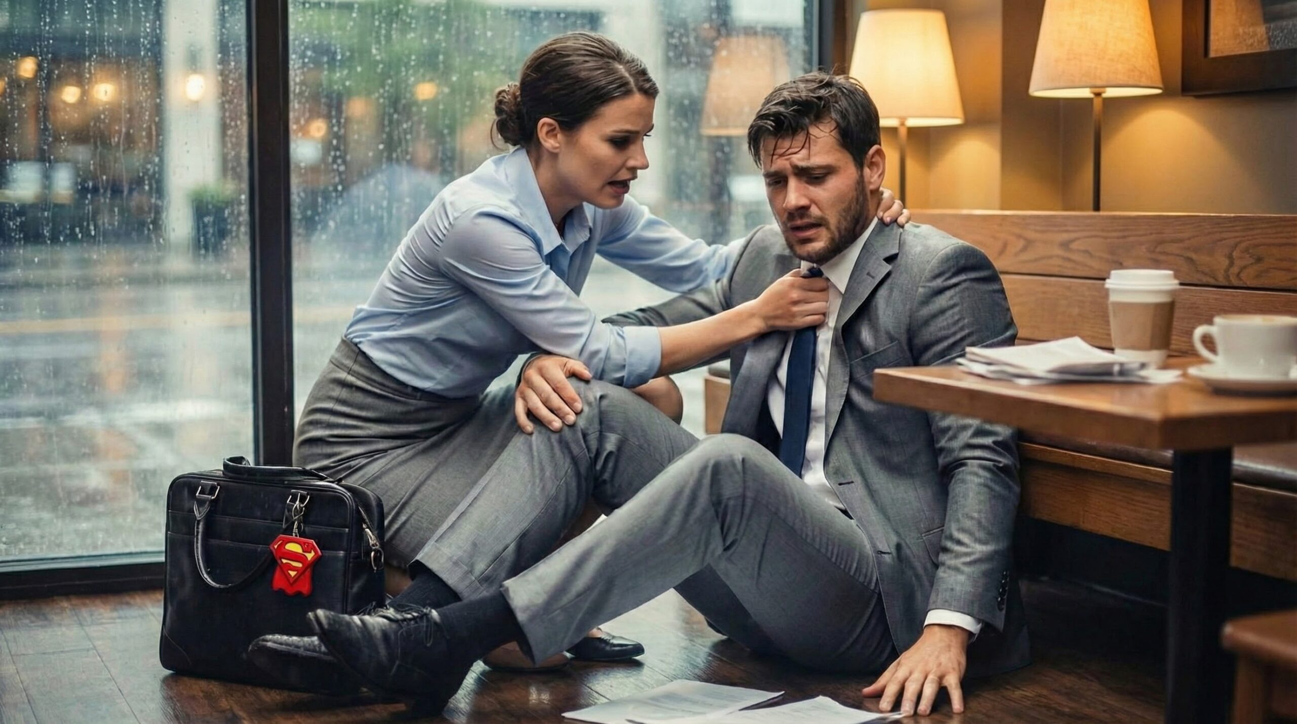 I stepped into the alley. Trash bins lined the brick walls. On the ground, half-hidden by shadows and rain, lay a man. He was wearing an expensive suit, tailored, completely out of place among the dumpsters. His hand trembled violently against the wet concrete.
