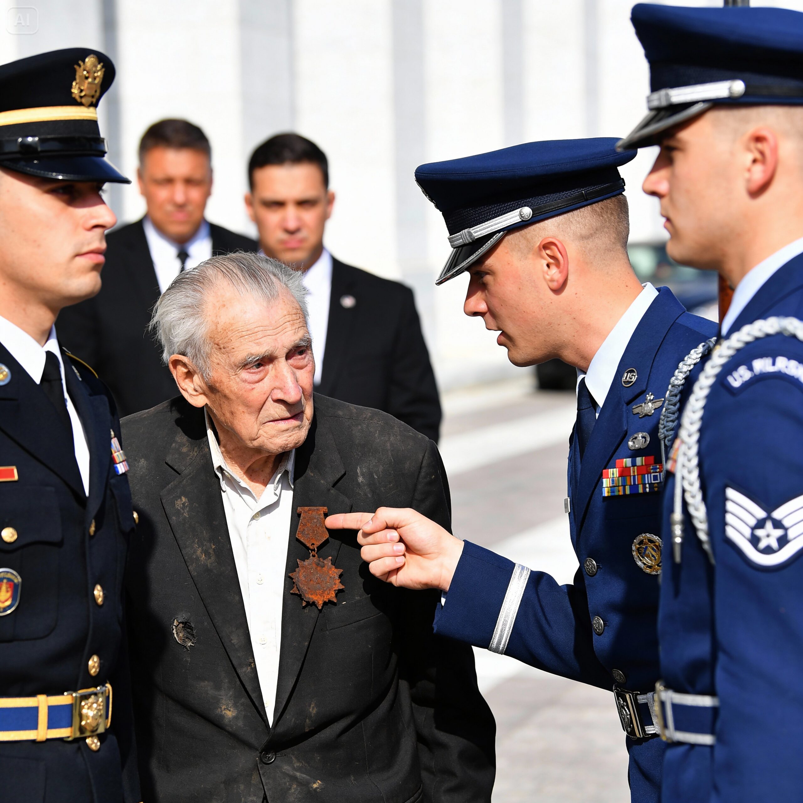 I didn’t know who he was calling. I just saw him speaking urgently, his eyes darting back to me every few seconds. I saw him mouth the words “John Miller” and then gesture vaguely toward his own chest, mimicking the placement of a medal.