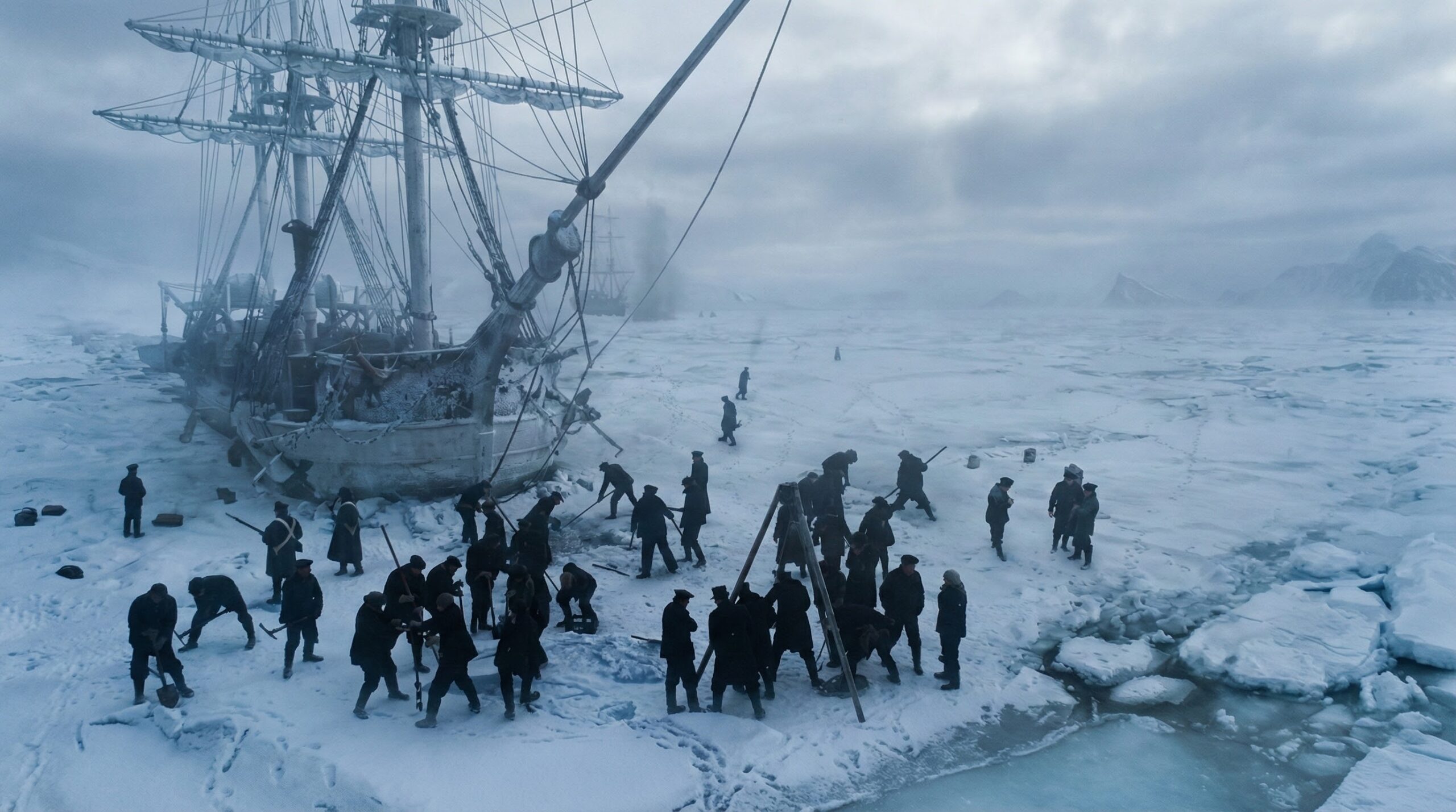 We were halfway across the bay when the ship groaned again. But this time, it wasn’t the ice. It was the sound of footsteps on the metal catwalks above us.