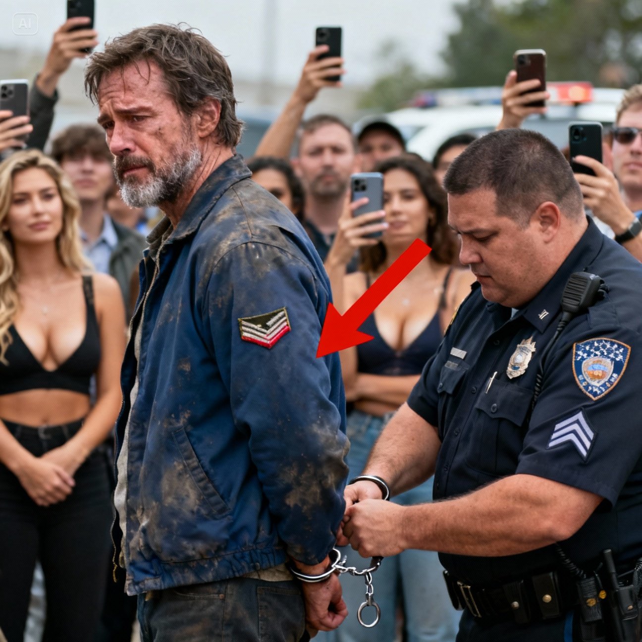The cold steel of the cuffs bit into my wrists. I felt the familiar ache in my right leg—shrapnel from a life I’d buried deep. A crowd had gathered by the mini-mart, phones held high like fireflies, recording my humiliation. They wanted a show. They wanted to see the liar get busted.