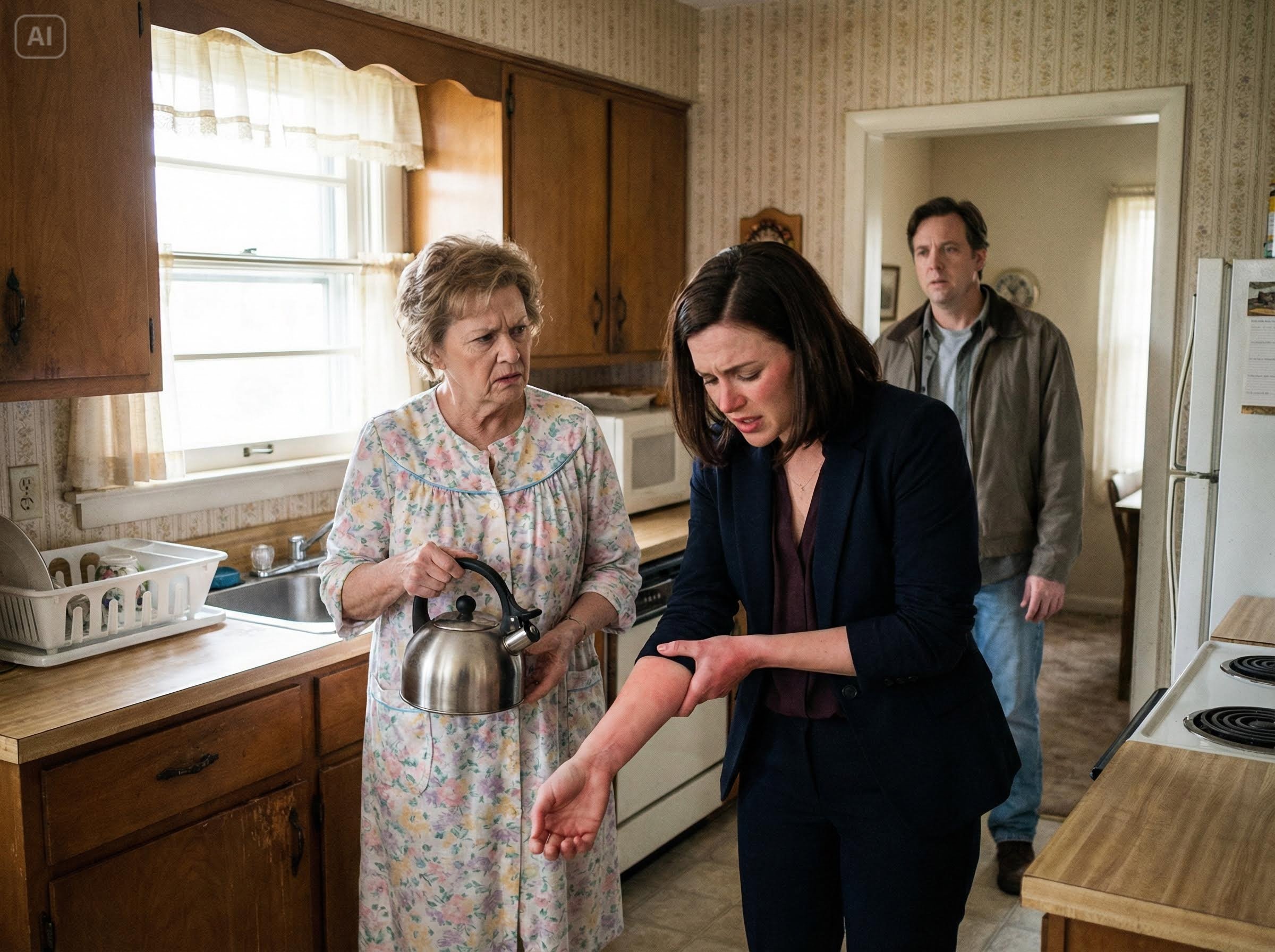 Linda stood by the stove, her face twisted in impatience, holding the steaming stainless steel kettle like a weapon. I had just muted my conference call with a client in Zurich, my mind still racing with stock charts, only to be met with her screaming about the lack of sugar in her coffee. The air in the Newton kitchen was thick, suffocating, charged with a tension that had been building for months. When the water splashed—burning, shocking, cruel—it wasn’t the pain that stunned me most; it was the silence from the man standing in the doorway who did nothing to stop it.