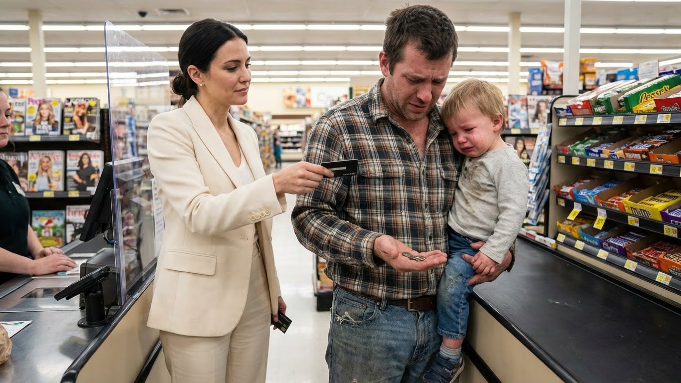 I looked up. Standing there was a woman who looked like she belonged on the cover of a magazine. Cream blazer, perfect hair, kind eyes. She handed me the quarter, but instead of backing away, she turned to the cashier.