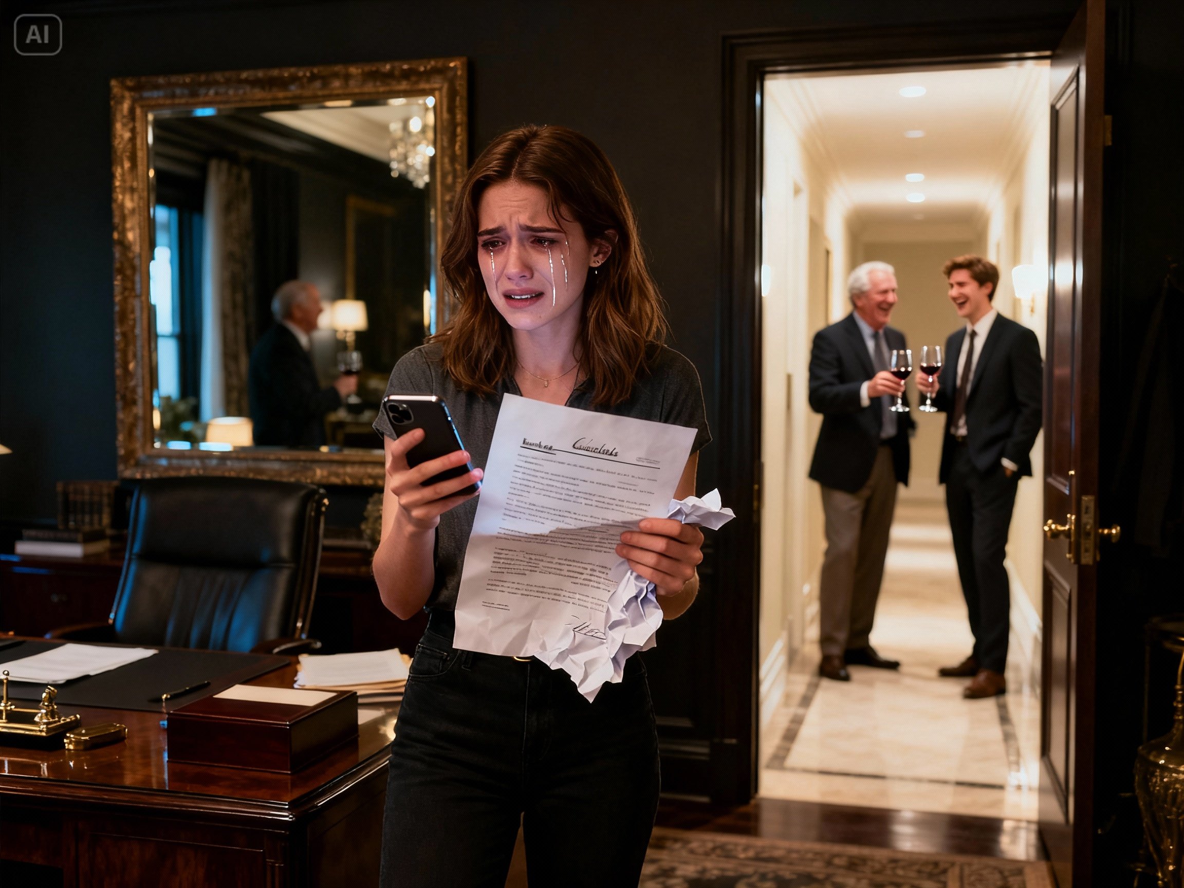 The folder slipped from my trembling fingers, hitting the polished mahogany desk with a sound that echoed like a gunshot in the silent study. I stood there, frozen, my heart hammering against my ribs as the bold words on the legal document burned into my retinas.