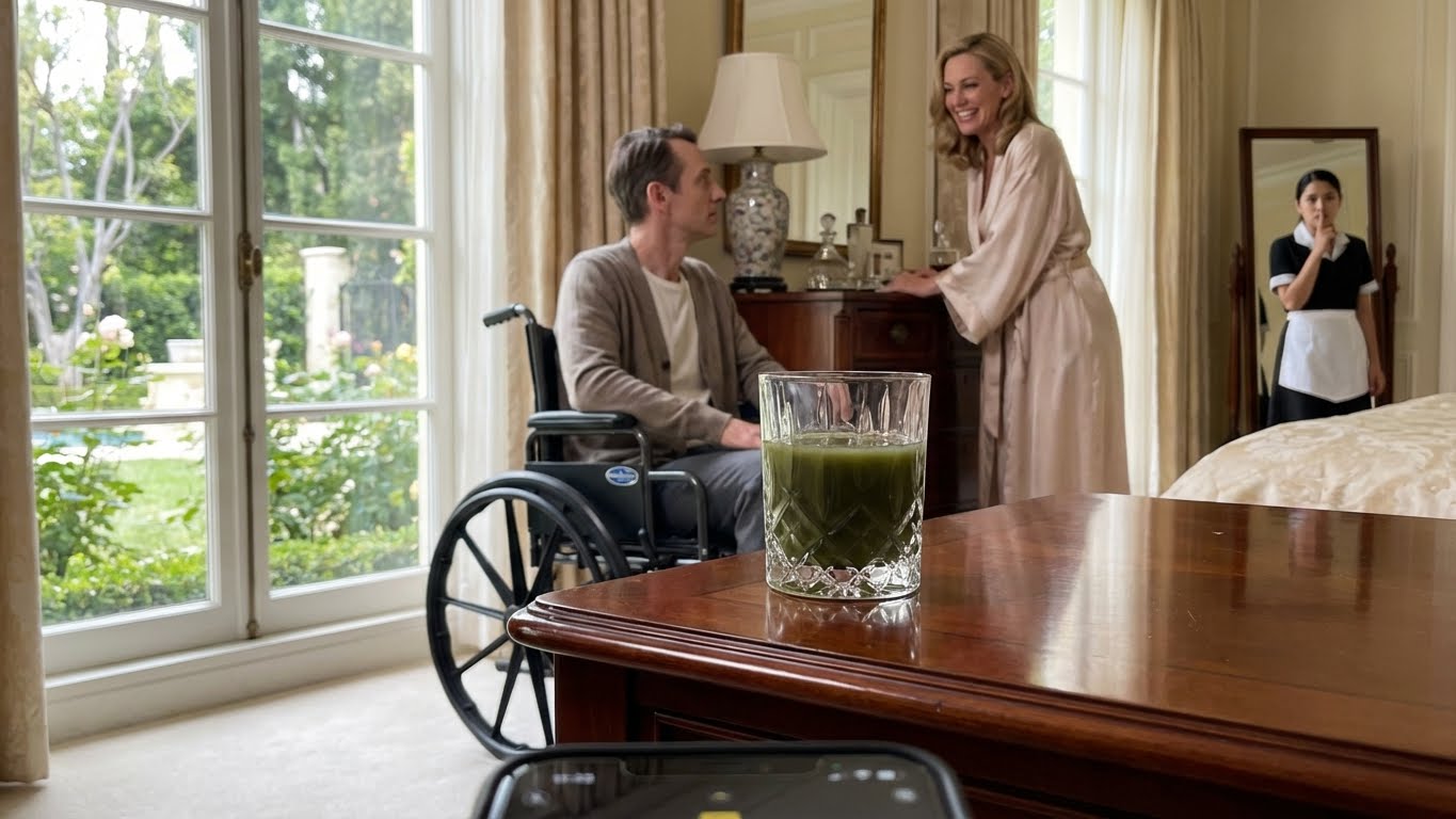 I wheeled myself over to it. My hands shook—not from the palsy that had plagued me recently, but from adrenaline. I picked up the glass. It smelled of kale and something else—something bitter and chemical that I had learned to ignore.