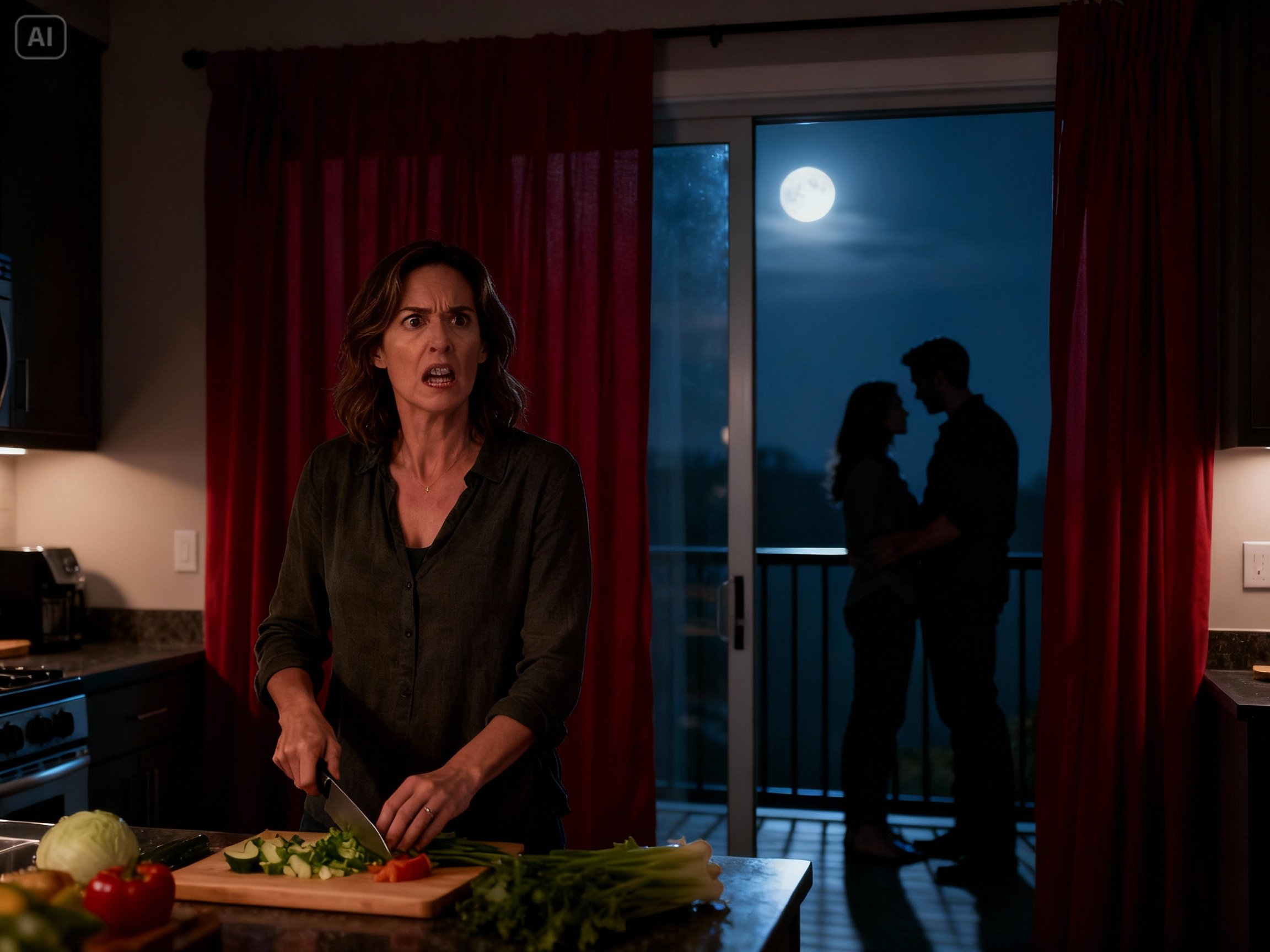 The knife hovered over the cucumber, my hand freezing in mid-air as a whisper drifted in from the balcony—a voice I knew, speaking words that weren’t meant for me.