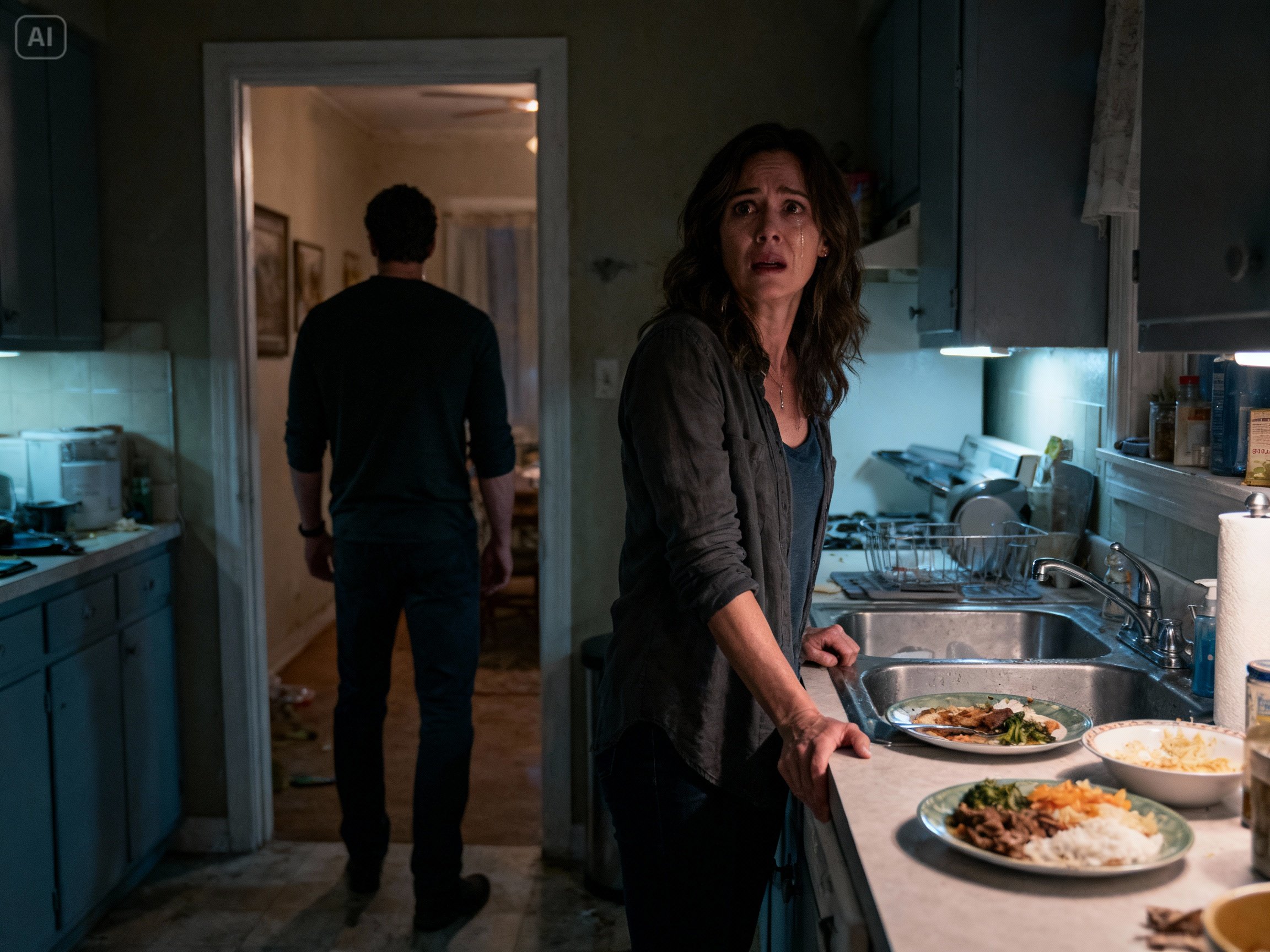 I froze. The soapy plate in my hand nearly slipped, but I managed to grip it, setting it slowly into the sink. The bubbles popped softly. My heart began to hammer against my ribs.