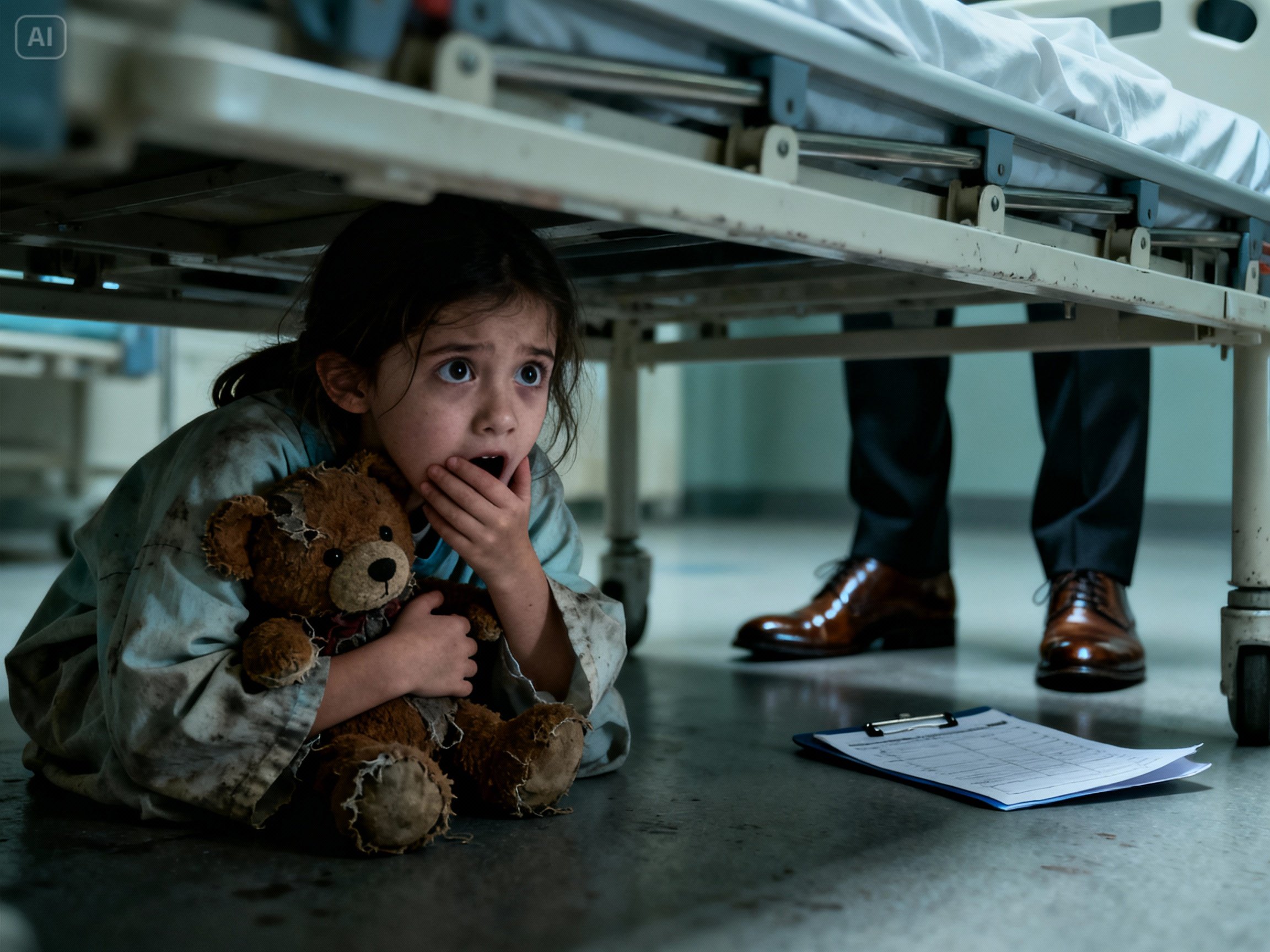 A tiny shadow detached itself from the wall. A little girl, no older than seven, with messy pigtails and a hospital gown that was too big for her, crawled out from under the empty bed next to mine. She was clutching a raggedy teddy bear to her chest.