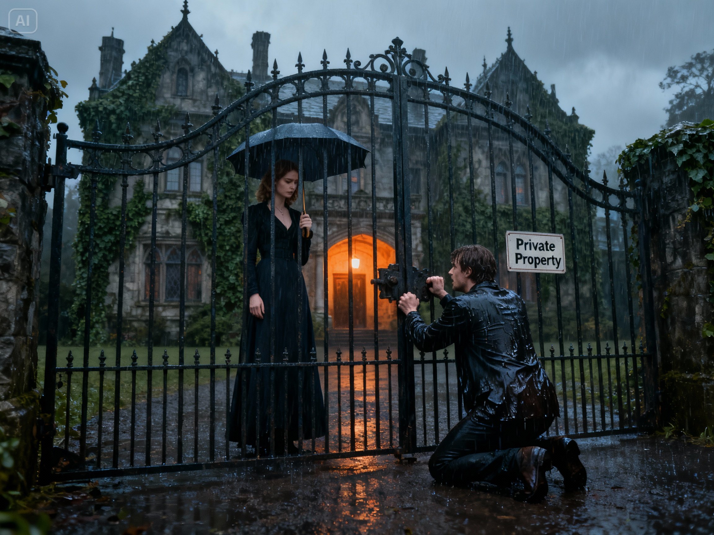 I sat in the car for a long time after the GPS announced, “You have arrived.” The engine ticked as it cooled, a metallic heartbeat in the silence of the countryside. Ahead of me, the iron gate loomed like the entrance to a fairy tale that had gone wrong—rusted, overgrown, and imposing.