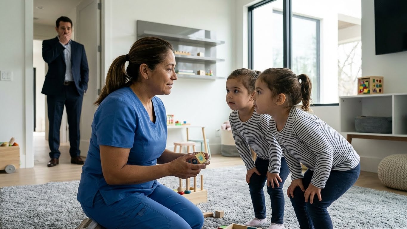 Most staff ignore the girls because the girls ignore them. But Maria didn’t start cleaning. She stood there, watching Emma and Sophie arrange their dollhouse. She watched their hands moving in that complex, secret rhythm they had developed. She saw the quick flashes of eye contact.