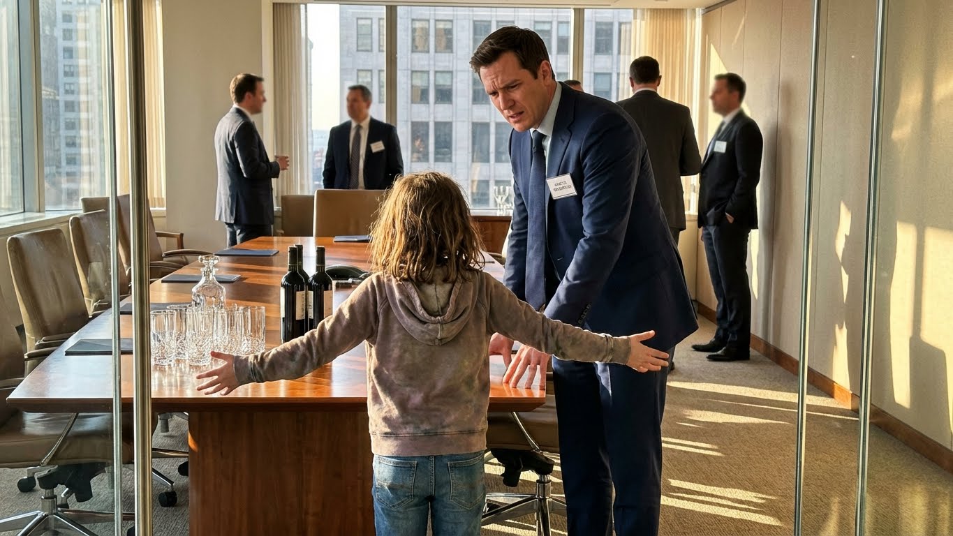 The silence that followed Isabella’s scream was heavy, suffocating, and absolute. It was the kind of silence that usually precedes a catastrophe. I, Marcus Henderson, stood there, my hand frozen halfway to the crystal glass, looking at this small, trembling child in worn-out sneakers who had just interrupted a hundred-million-dollar deal.