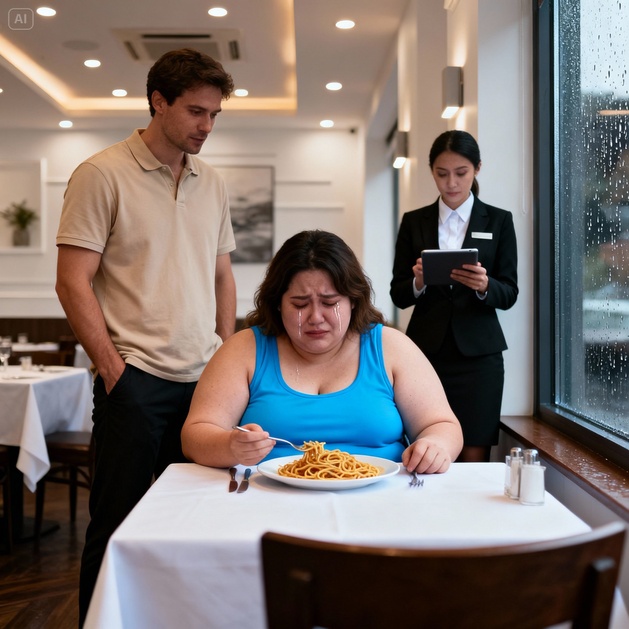 Eden sentada ali, tremendo, com o rímel escorrendo pelas bochechas enquanto as palavras ecoavam no café silencioso: “Você é simplesmente gorda demais para mim”. O que aconteceu a seguir, quando um estranho se levantou da mesa ao lado, mudaria não apenas a noite dela, mas todo o curso de sua vida.