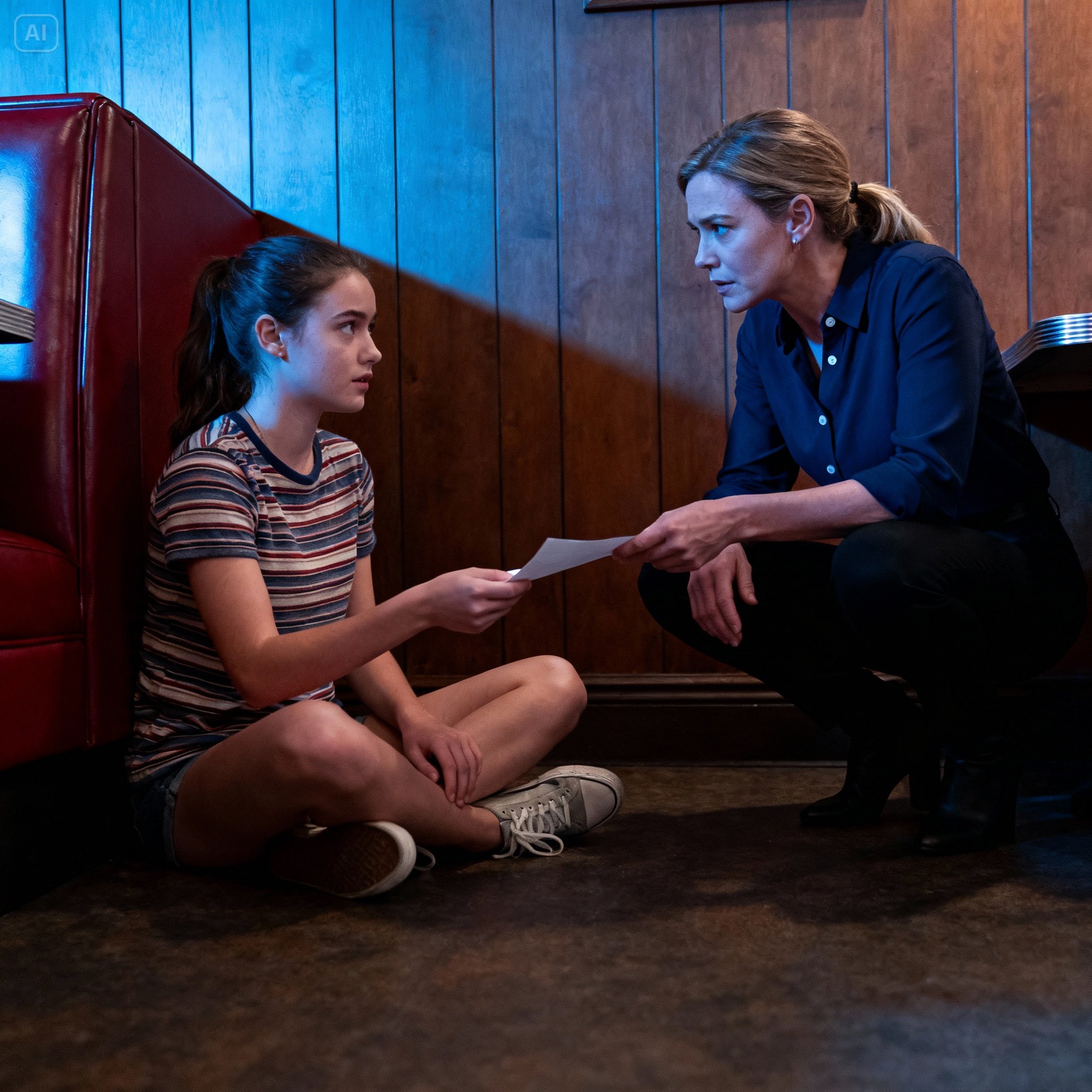 Emily estava sentada ao meu lado, anormalmente quieta. Ela não tinha tocado em seu pão. Em vez disso, estava traçando padrões na condensação de seu copo de água, seu rosto pálido sob as luzes baixas.