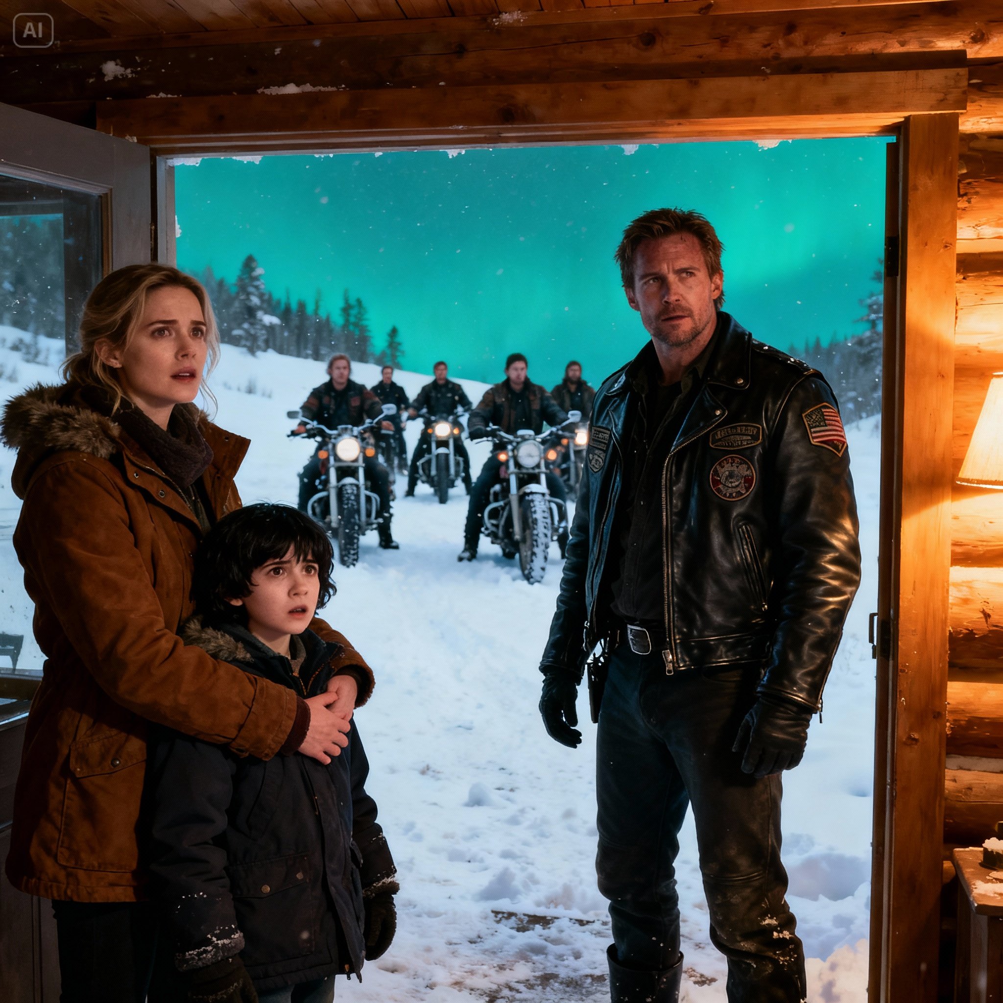 Emily e Grace permaneceram na varanda, abraçadas, acenando enquanto a coluna de couro preto e cromo serpenteava montanha abaixo, desaparecendo entre os pinheiros cobertos de neve como um rio de aço.