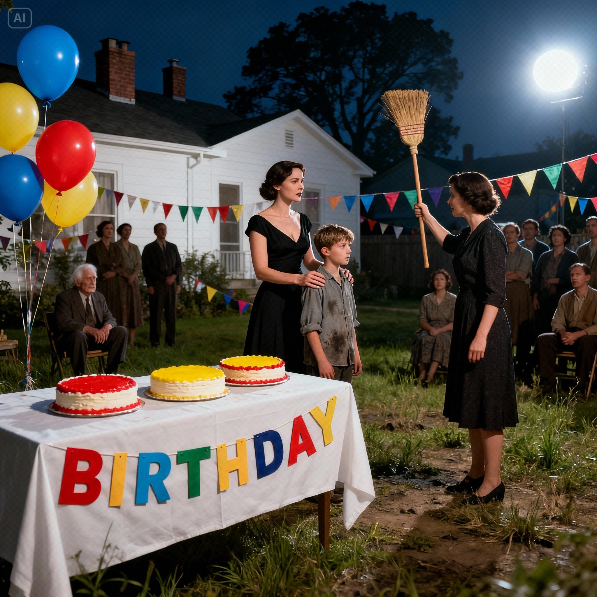 Ethan congelou, com um pedaço de pizza no meio do caminho até a boca. Suas bochechas ficaram de um vermelho carmesim profundo. Ele baixou os olhos tão rapidamente que senti uma dor física no peito. Tínhamos convidados por toda parte — crianças da escola, seus pais, nossos vizinhos — e todos eles o observaram parado ali com aquela vassoura, humilhado publicamente como se tivesse feito algo errado apenas por existir.