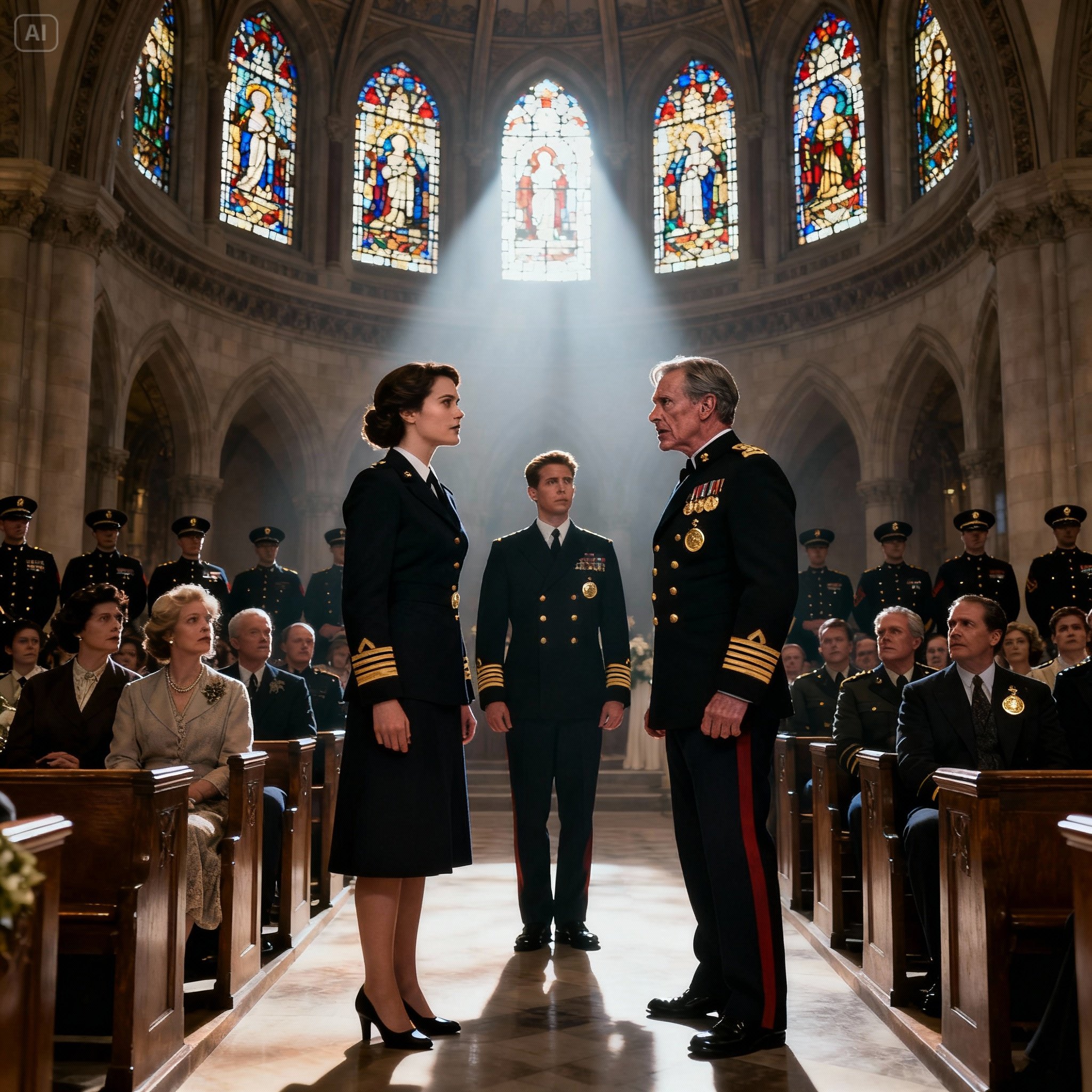 Mas eu não me movi. Eu não chorei. Permaneci de pé, ereta em meu uniforme de gala — o Dress Blues —, com as fileiras de medalhas em meu peito capturando a luz fracionada que filtrava pelos vitrais como um escudo de desafio silencioso.