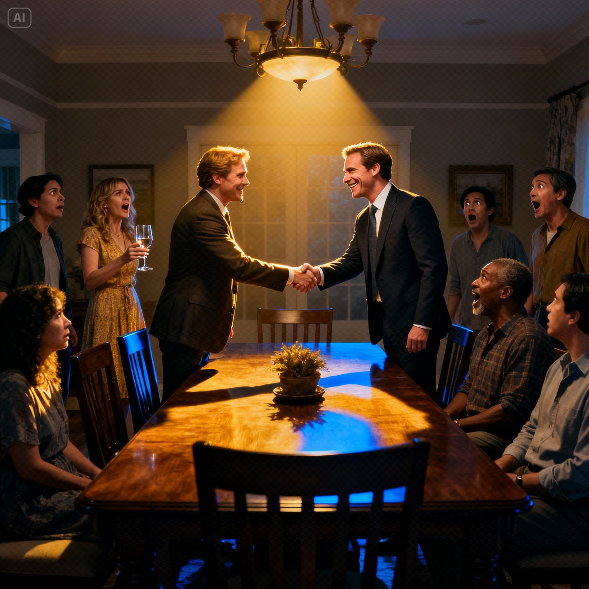 Minha mãe piscou como se a sala tivesse inclinado. E, de repente, pela primeira vez na noite, a dinâmica de poder virou da maneira mais estranha e satisfatória possível.
