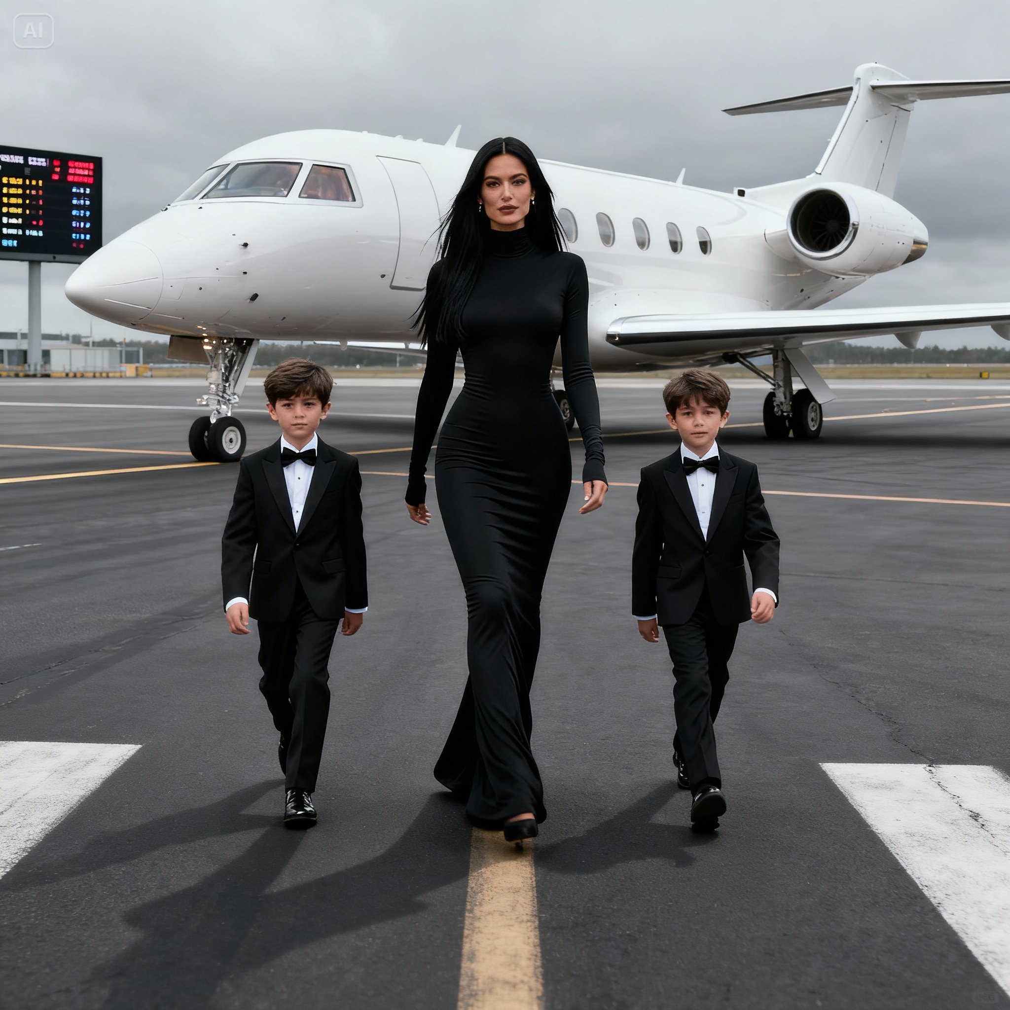 Audrey desceu do avião com seus dois filhos ao lado. Eles vestiam blazers azuis-marinhos, parecendo pequenas versões de cavalheiros, alertas e ansiosos.