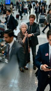 She was sitting near Gate C17, an elderly woman who radiated a kind of classic elegance that was becoming rare. Her cream-colored coat was immaculate, her silver hair coiffed in a way that spoke of wealth and dignity. But her face… her face was a map of pure, unadulterated terror.