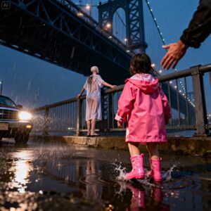 We stayed like that for a long time, huddling on the bridge under the weeping sky—a widower, a dying woman, and a little girl with a strawberry coat. Three broken pieces finding a way to fit together.