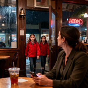 They couldn’t have been more than six years old. They were a whirlwind of curly brown hair that bounced with every step and bright, piercing green eyes that scanned the coffee shop with the intensity of a SWAT team clearing a building. They wore matching red jackets over what looked like plaid school uniforms, the kind with the little pleated skirts that had clearly seen a long day of playground warfare. Their small hands were clasped tightly together, knuckles white, as they surveyed the room.