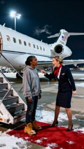 She wasn’t just a flight attendant; she was the gatekeeper. To her, the cabin of a private jet was a sanctuary, a holy place where only the worthy were permitted to tread. And looking at me—a Black woman in a hoodie, dripping slush onto her holy ground—she had evidently decided I was a desecration.