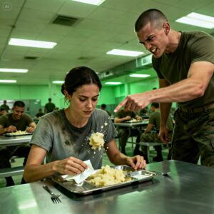 Derek leaned in, a smirk twisting his face. He smelled of cheap cologne and aggression. “Yeah, well, eat faster. You’re taking up space real soldiers need.”